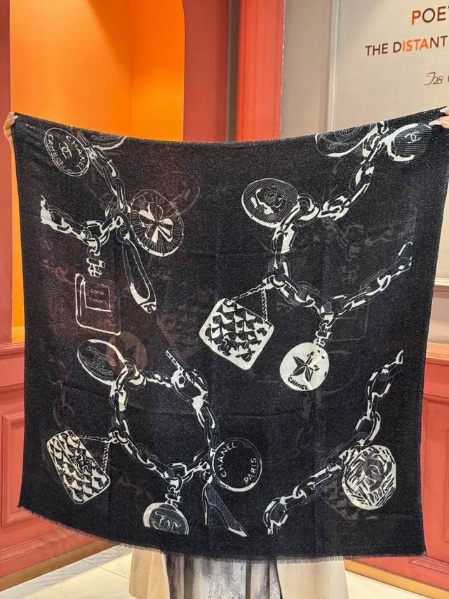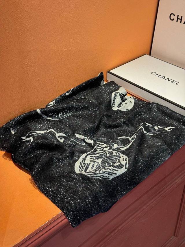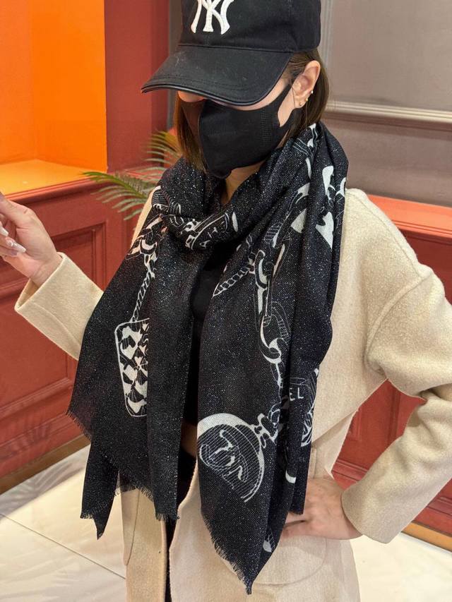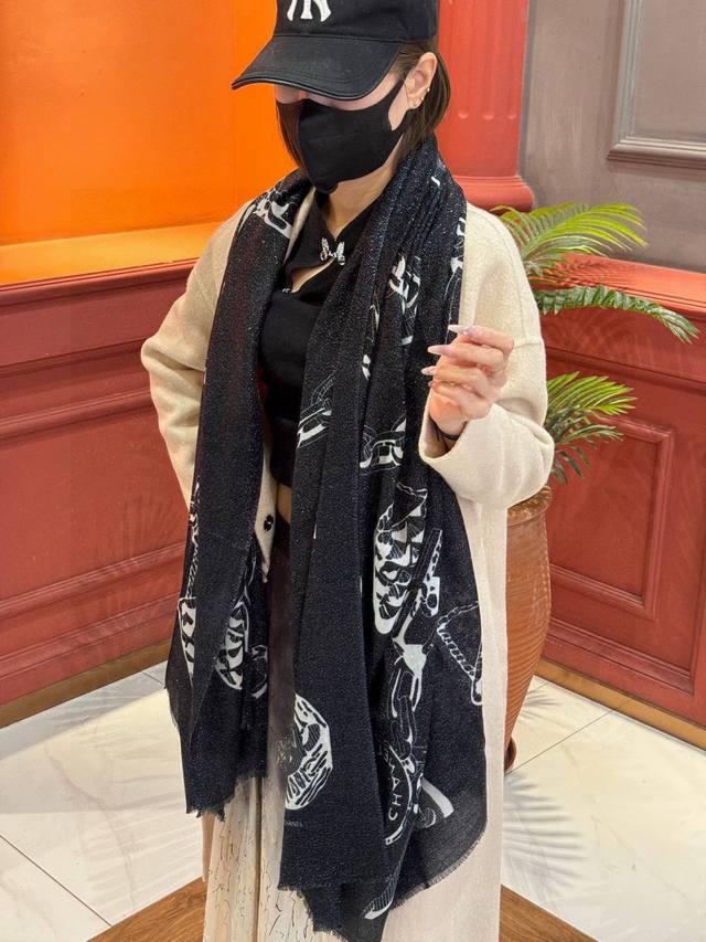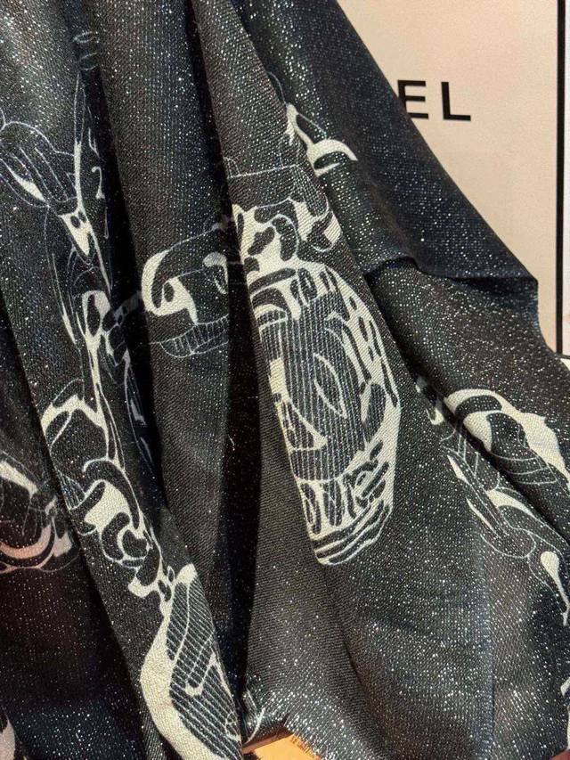 New shiny scarf, new customer-provided silver-thread cashmere fabric long scarf is stunning [tears] Chanel silver-thread icon, the royal palace-level top-grade new counter sale pure cashmere sequins unique design style plus rich Chanel's special patchwork pattern print this season, beautiful to the extreme, the real wear is extremely luxurious and high-end rare ~ a little expensive ~ whether it looks good or not, you can judge for yourself. Size 100X200cm long scarf, 100% top-grade pure cashmere