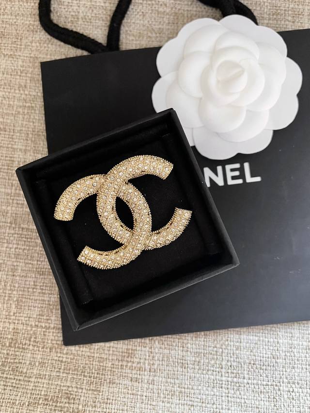 New Year's new Xiao Chanel brooch double C brooch, crystal diamond brooch uses high-quality brass material with glaze, embellished in a regular pattern. Simple yet detailed, really versatile, exclusive shipment real shot