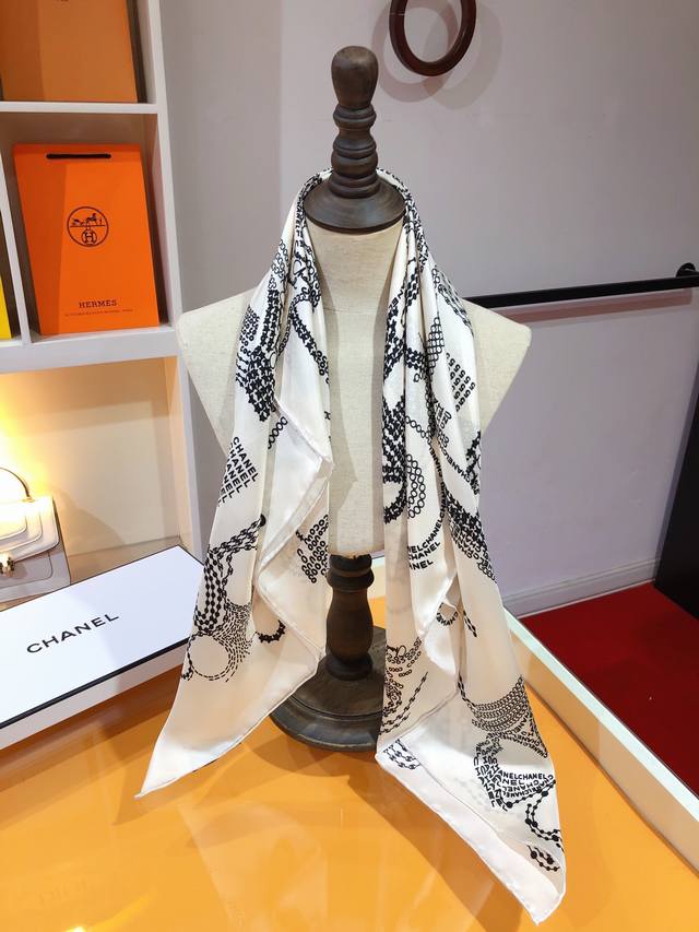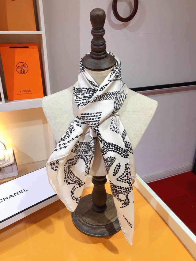 Original Chanel 90cm silk square scarf, made of top-grade twill silk with pure hand-curled edges, full of light luxury. High-end heavy twill silk is completely counter-quality. The fabric pursues shape, feels crisp, and the cool color scheme is super ladylike! Good goods don't wait, so don't miss it if you like it. Ingredients and size: 90X90cm 100% twill silk