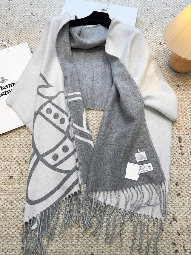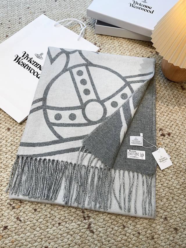 's favorite Saturn logo. In spirit, Vivienne Westwood is the most representative British fashion brand. This season's highly recommended item features a large "Saturn" logo jacquard, the meaning of which aligns with Westwood's design philosophy. Made from 100% high-strength wool, size: 200*50, double-sided design, soft and comfortable to the touch, a super sought-after bestseller!
