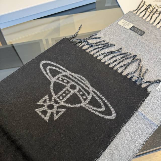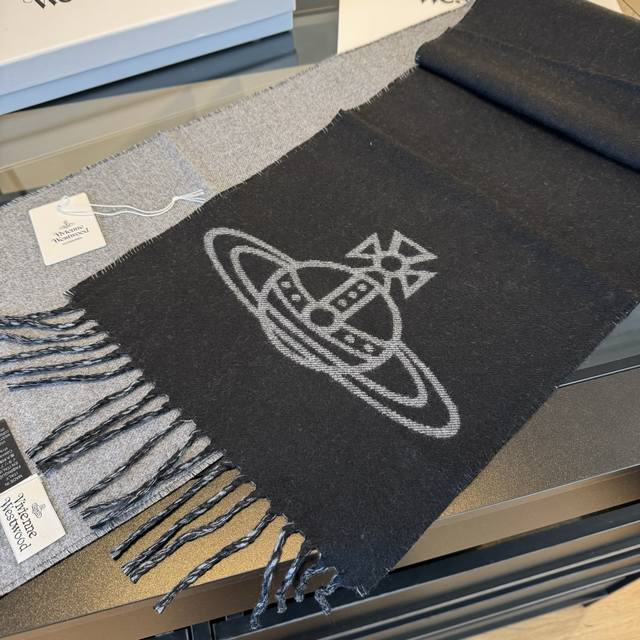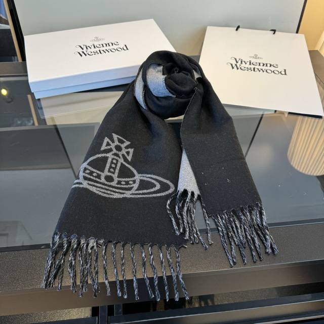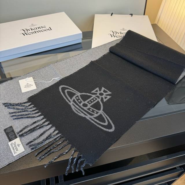 Original Quality! British Punk Godmother DDD "Vivienne Westwood's" Favorite Saturn DDD In spirit, Vivienne Westwood is the true representative of British fashion brands. This season's highly recommended item features a large "Saturn" logo jacquard, the meaning of which aligns with Westwood's design philosophy. The fabric is 100% high-strength wool blend, size: 185*26, double-sided design, soft and comfortable to the touch, a super sought-after bestseller... DDD