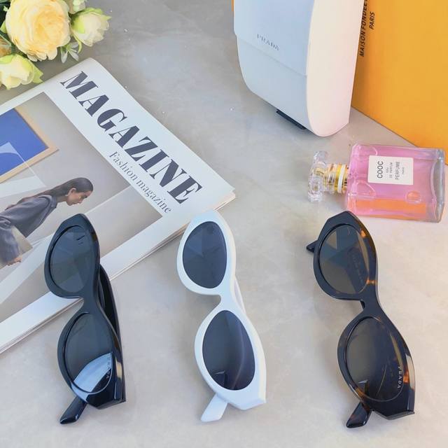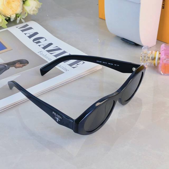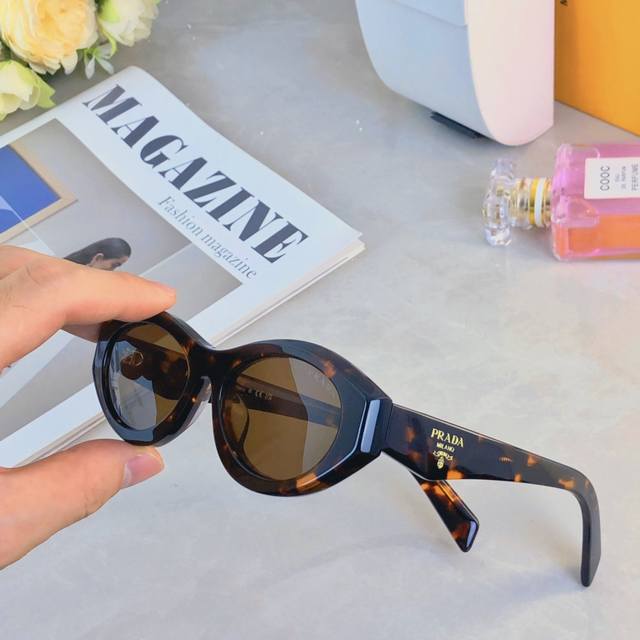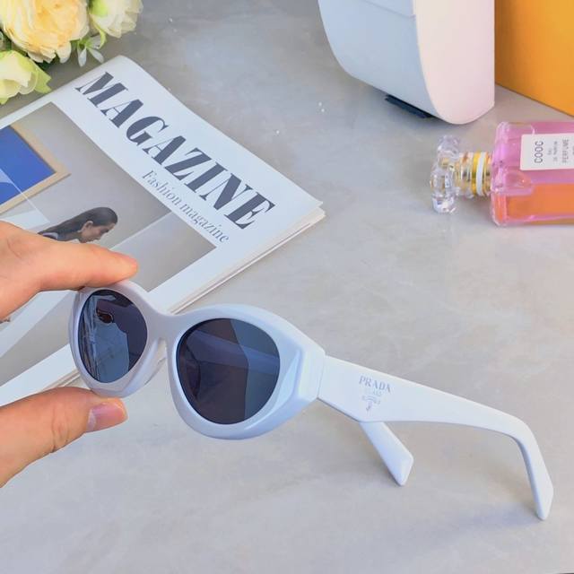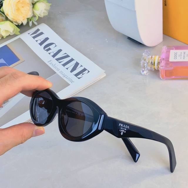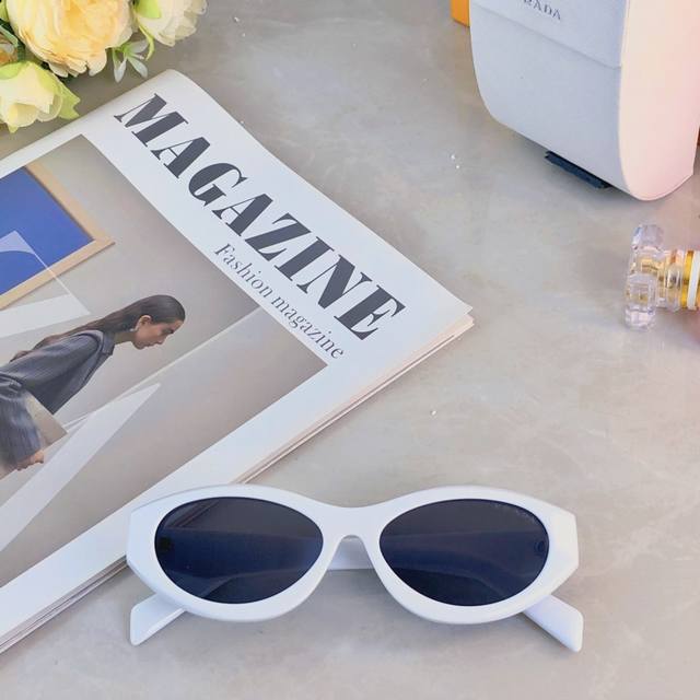 prad* Liu Zhimin and Chen Duling's same sunglasses for women, trendy cat-eye narrow frame, triangle logo, sun protection sunglasses pr26Z