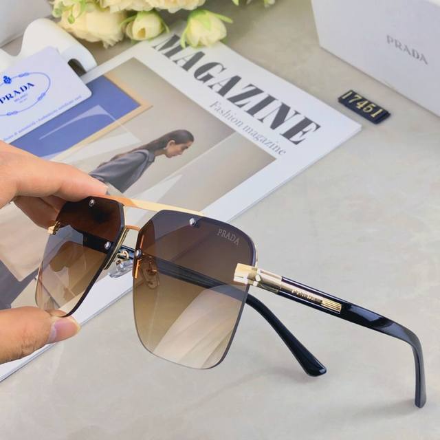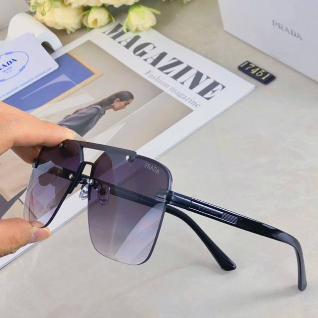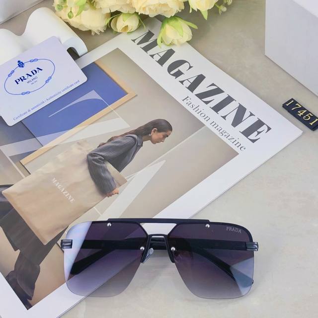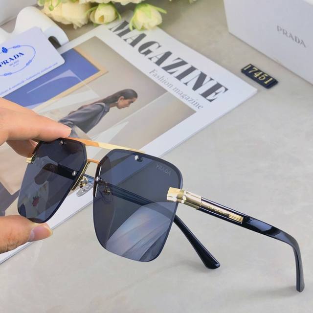 prada European and American senior men's sunglasses double beam metal sun protection driving texture sunglasses new sunglasses