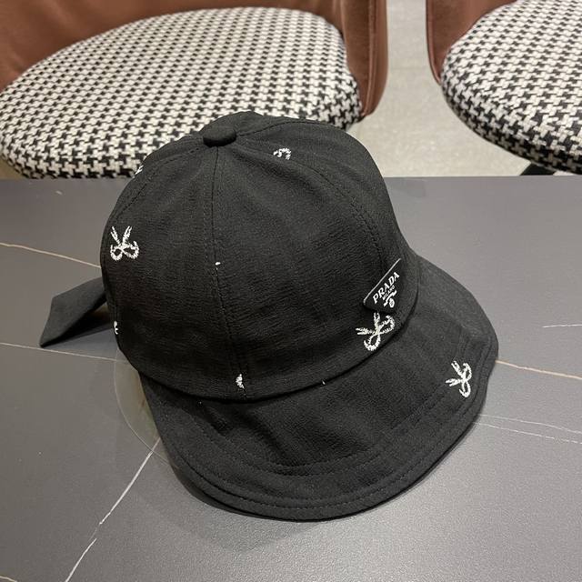 / prada Prada summer all-match thin new bow tie cap women's outdoor casual sweet l