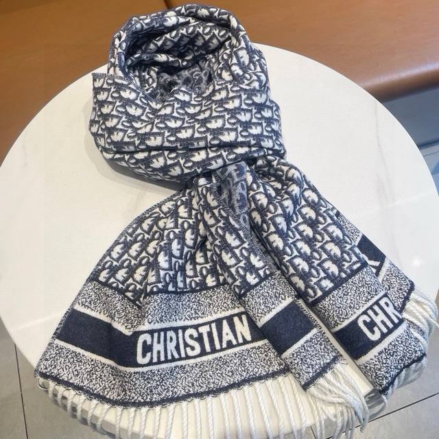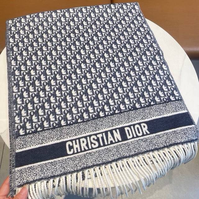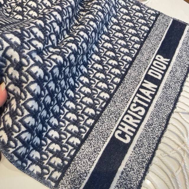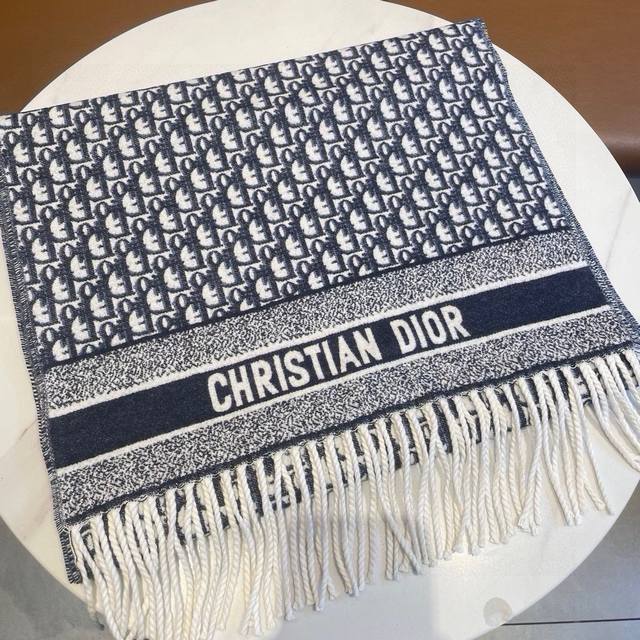 This wool blend shawl reinterprets the D family's iconic Oblique print, which was originally launched in 1967. The contrasting trim is decorated with tassels and paired with the "CD capital letter logo to enhance the style. It can be draped over the shoulders and is an ideal accessory for keeping warm and fashionable.