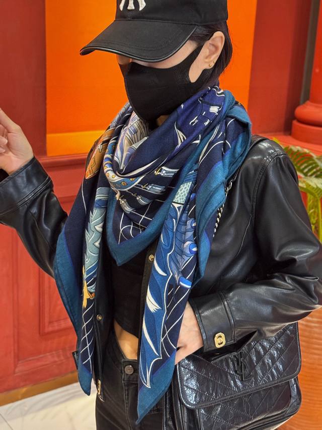 . This classic shawl embodies the essence of powerful and charming femininity. This 140mm silk and wool square scarf is innovative, interpreting infinite emotion and freedom, and writing a personal narrative in a unique way.
