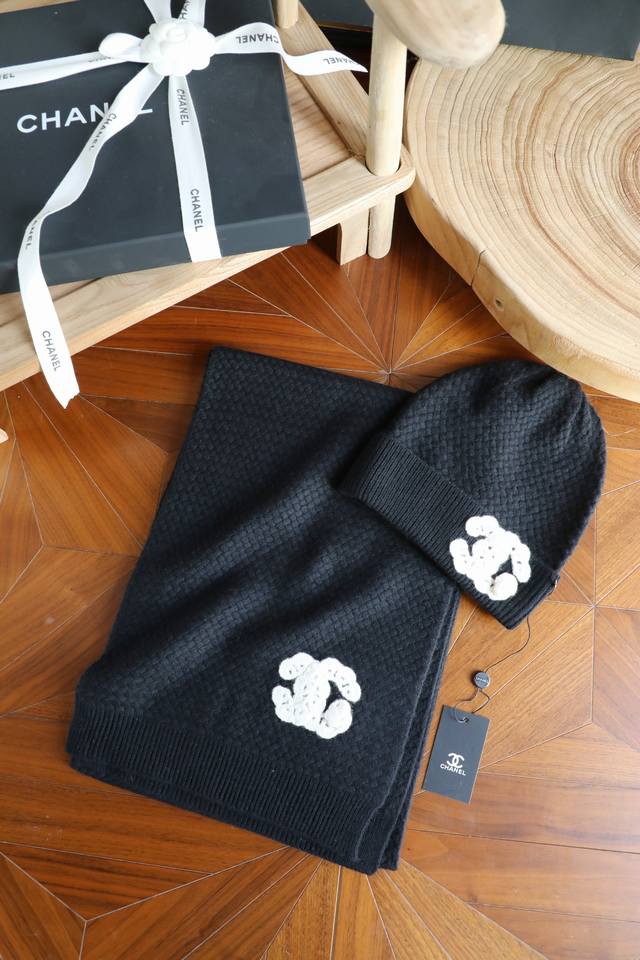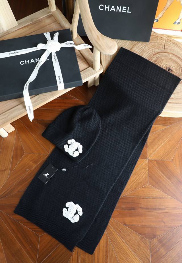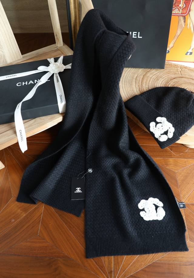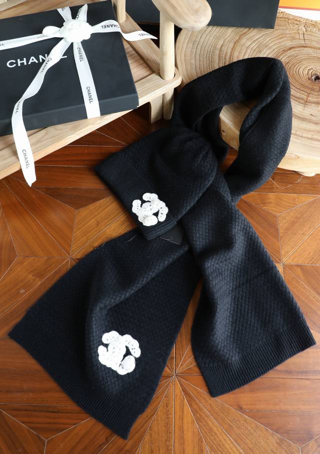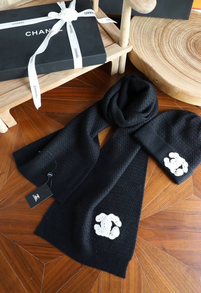 Chanel-style crocheted double C cashmere ribbed scarf set (can be purchased separately) Size 35*180 100% cashmere