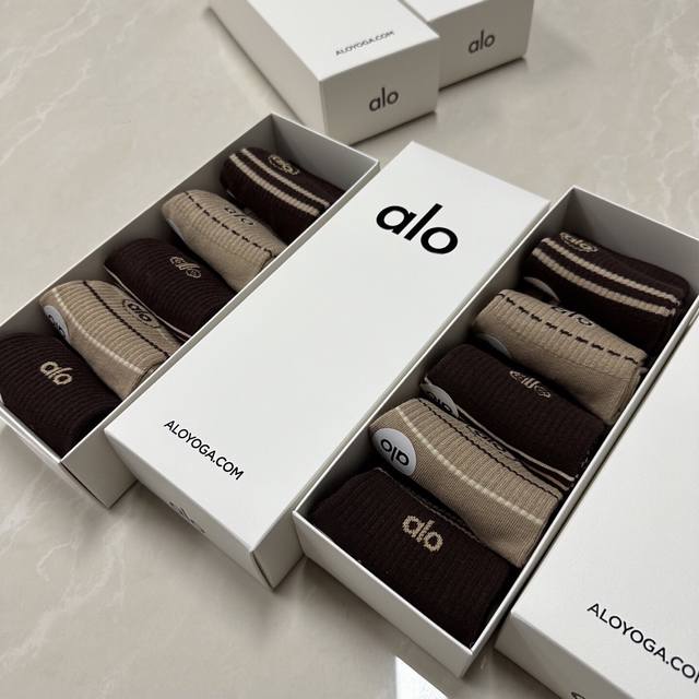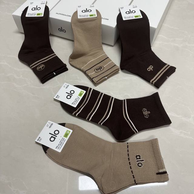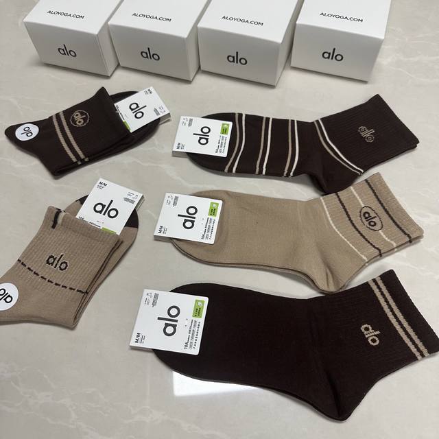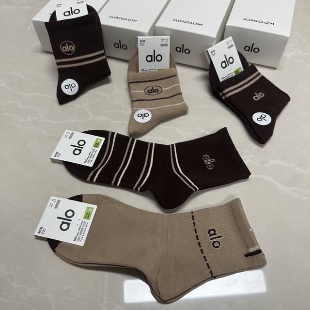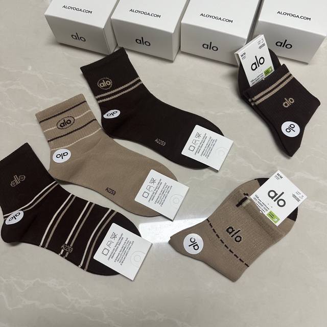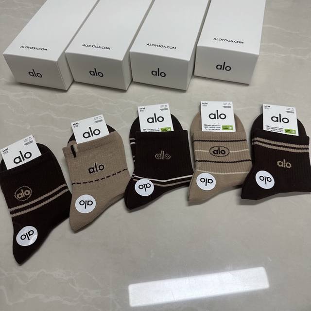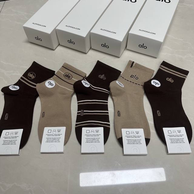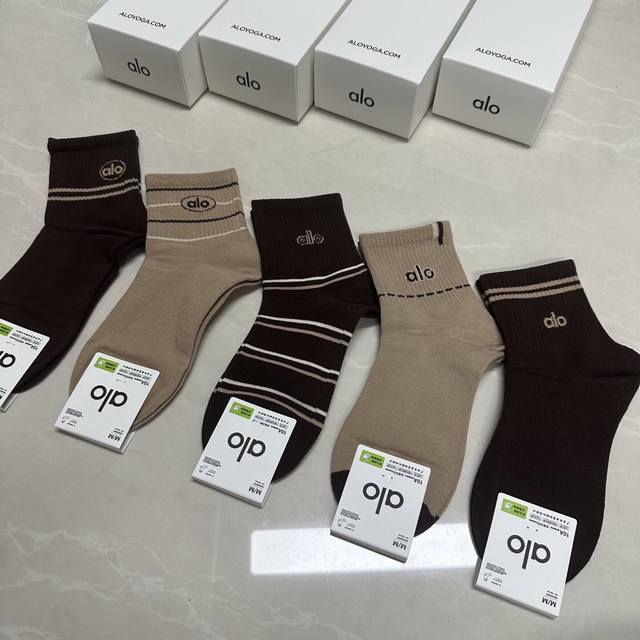 Special Alo Alo new women's mid-calf socks, one box of five pairs of jacquard classic letter logo, made of pure cotton material, breathable and comfortable, super nice and popular small single product, big brand out, trendy must-have super easy to match