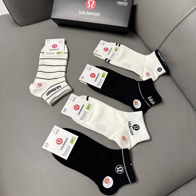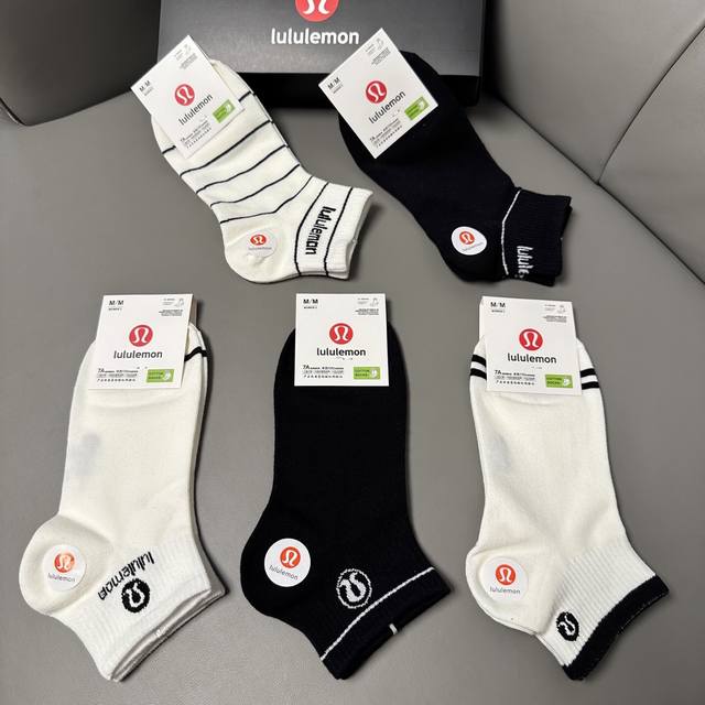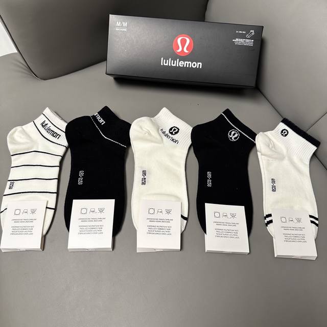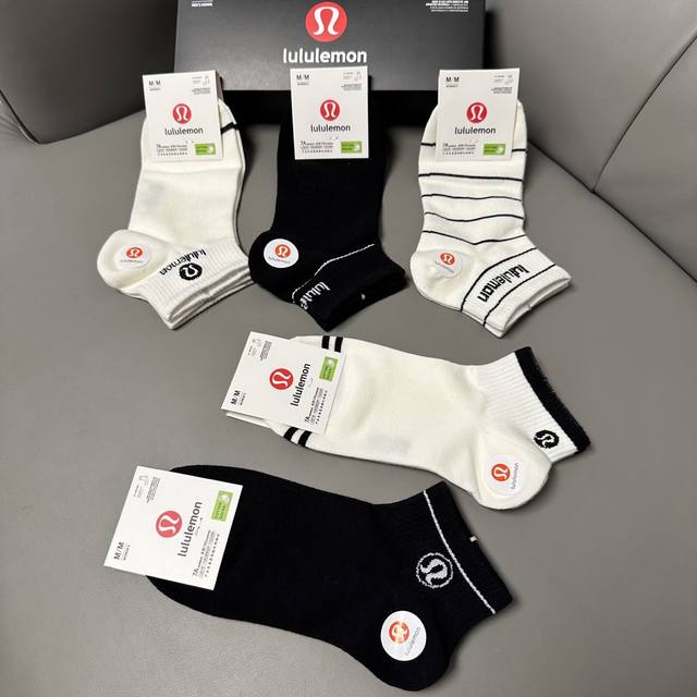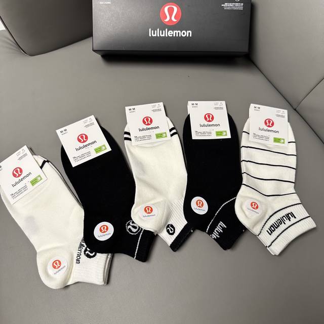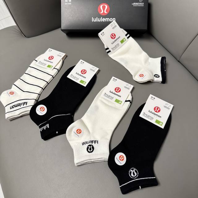 Special Lululemon Lulu Lulu new socks, one box of five pairs of jacquard classic logo, made of pure cotton material, breathable and comfortable, super nice and popular small single product, big brand out, trendy must-have super easy to match