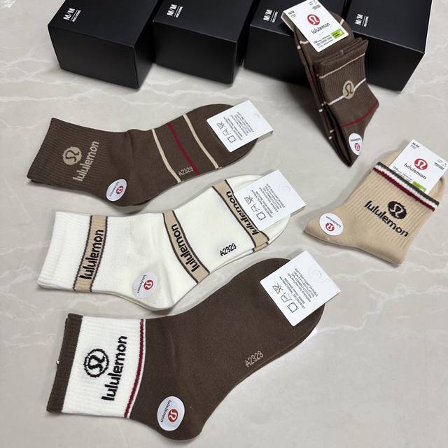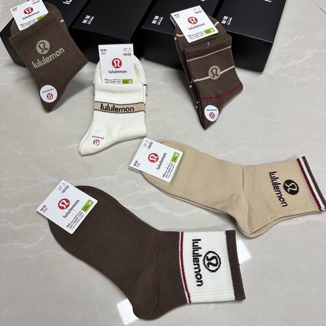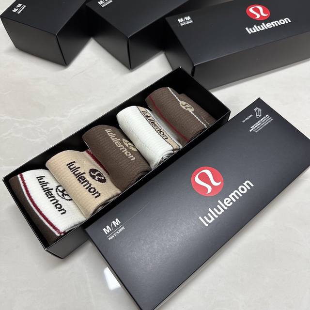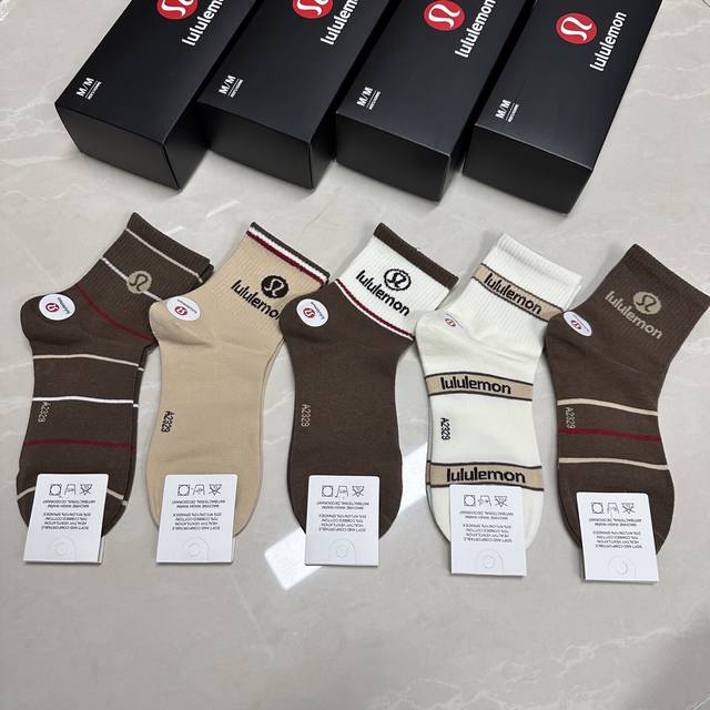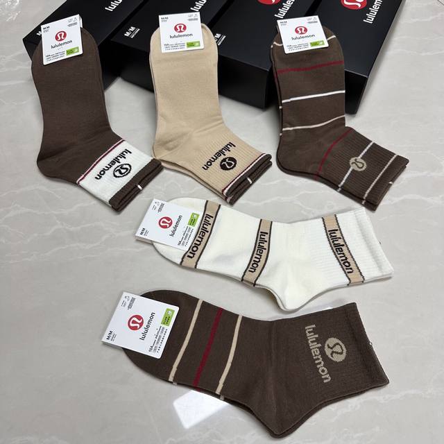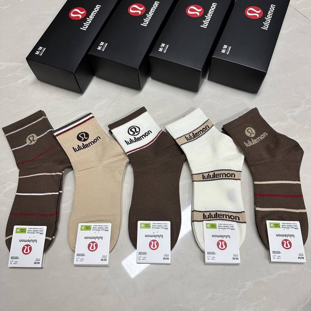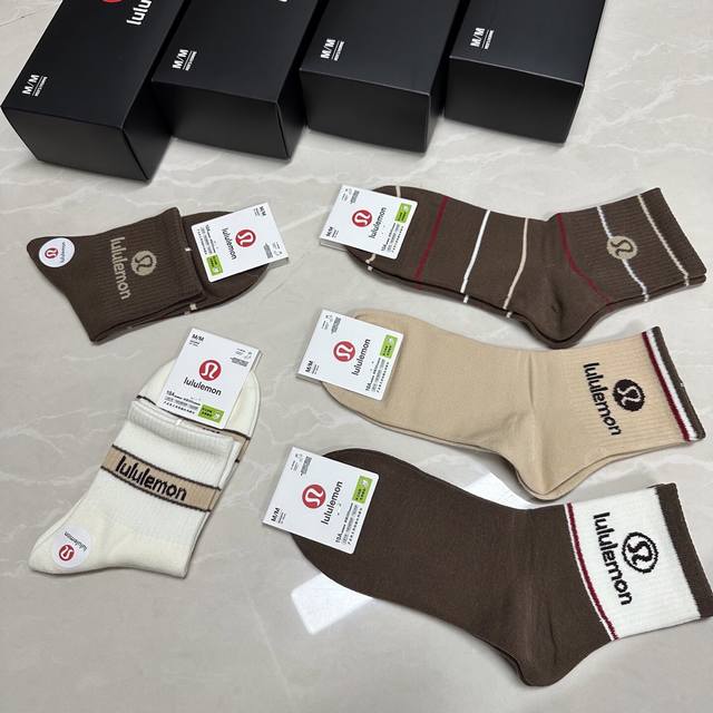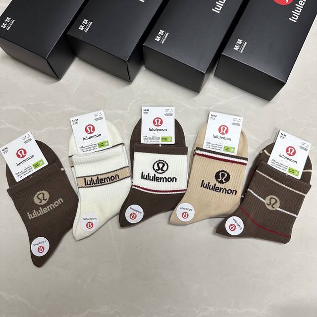 Special Lululemon Lulu Lulu new women's mid-calf socks, one box of five pairs of jacquard classic logo, made of pure cotton material, breathable and comfortable, super nice and popular small single product, big brand out, trendy must-have, super easy to match