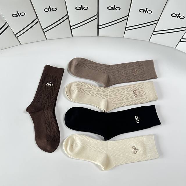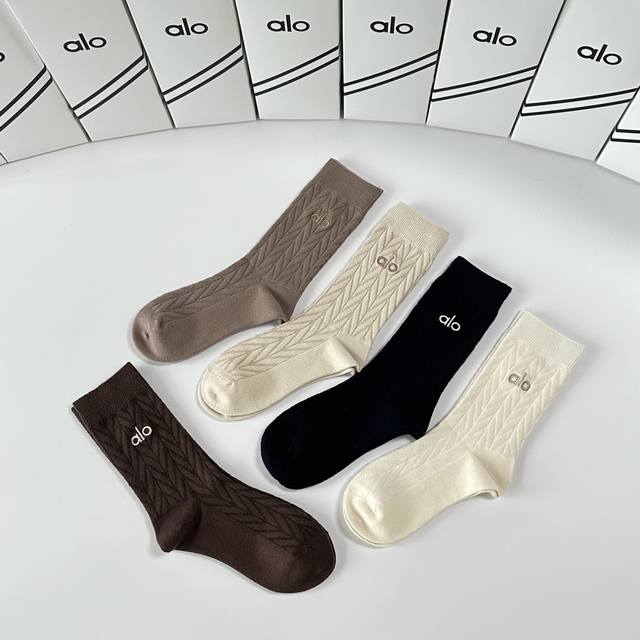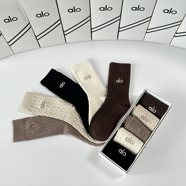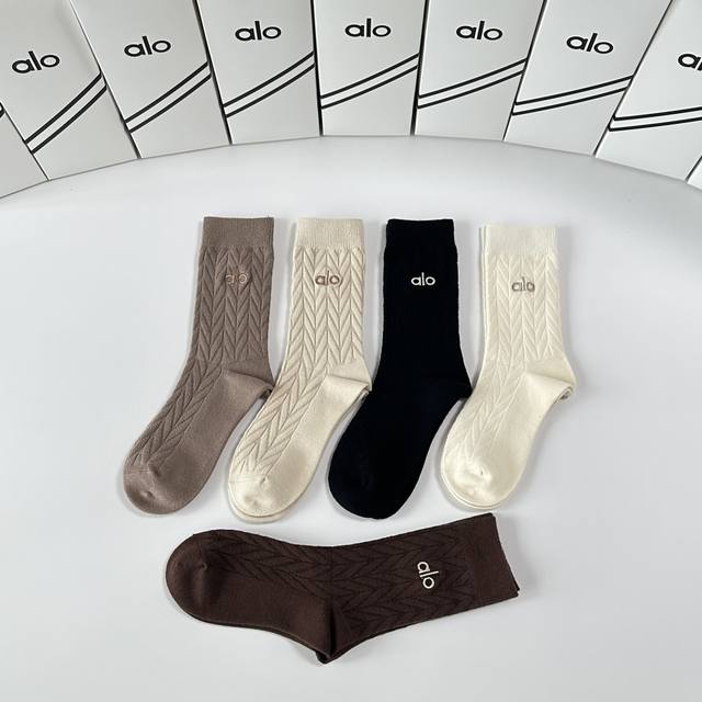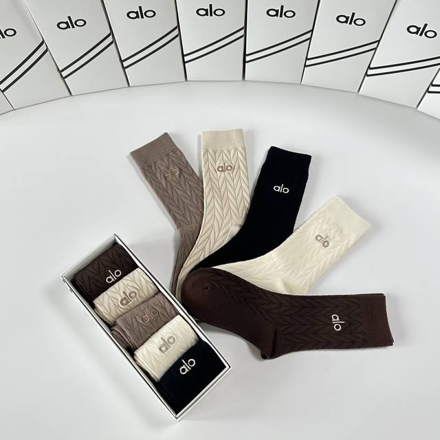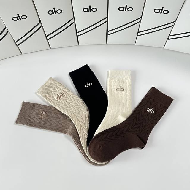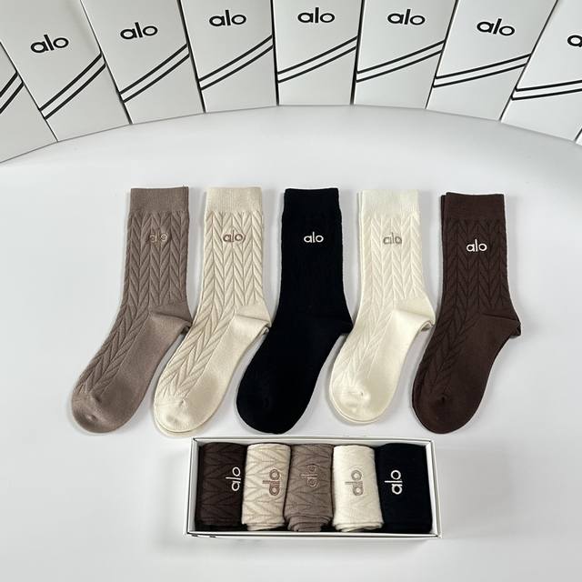 Special Packaging DDD Alo New Cashmere Embroidered Mid-Length Slouch Socks! Five pairs per box, same style as in department stores, designer street style, a must-have for trendsetters, super easy to match DDD