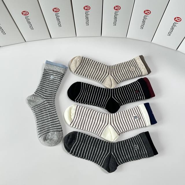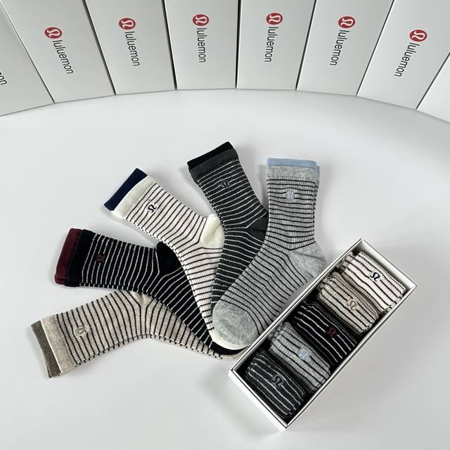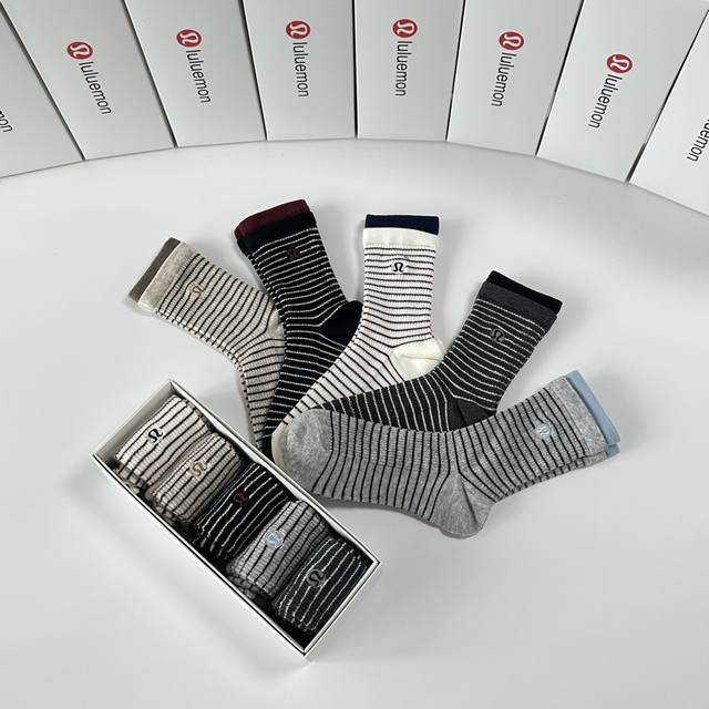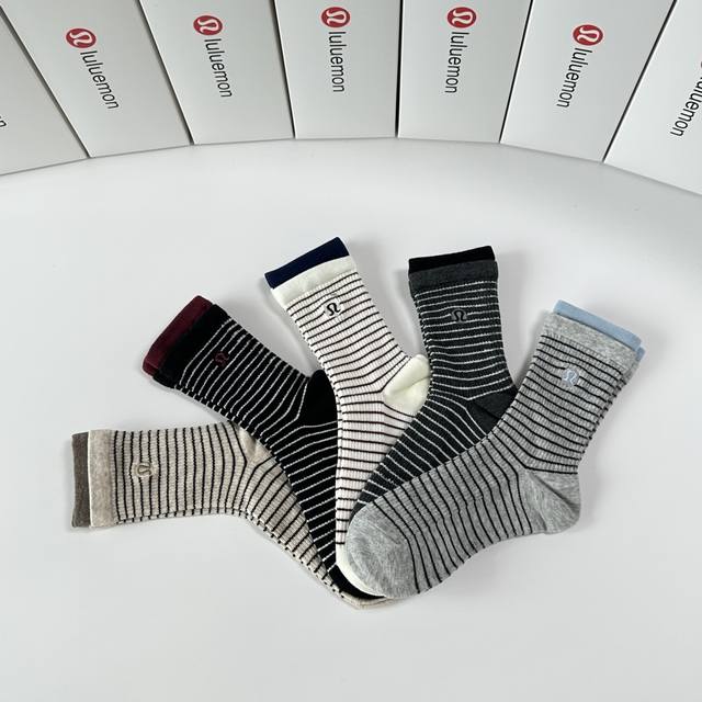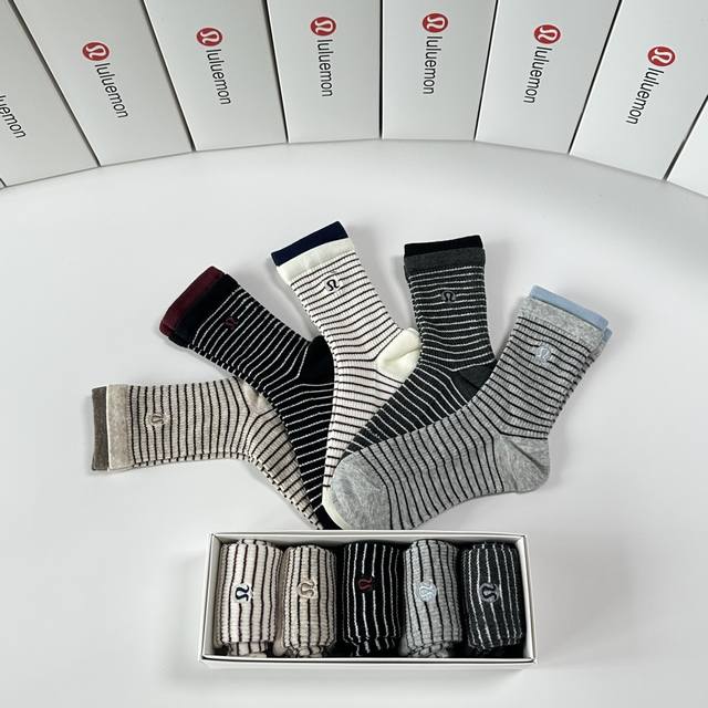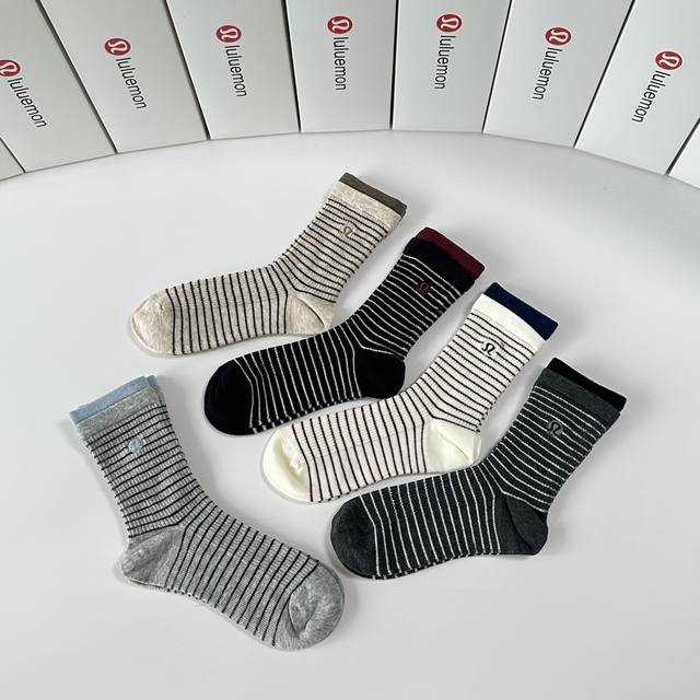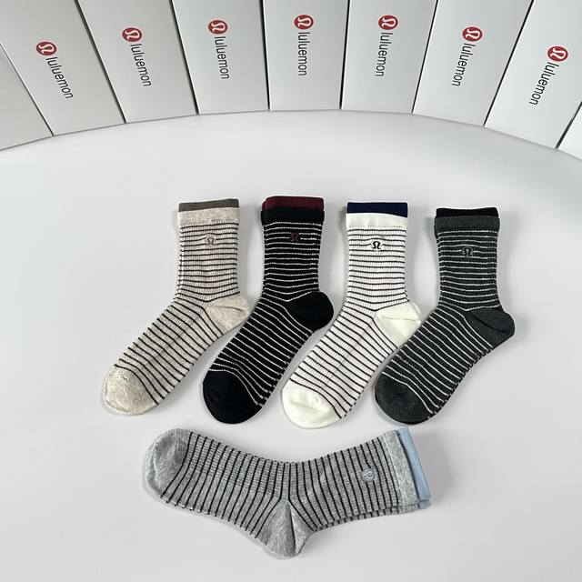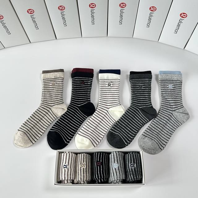 Lululemon New Cashmere Embroidered Mid-Length Slouch Socks! Five pairs per box, same style as in department stores, designer look, a must-have for trendsetters, super easy to match.
