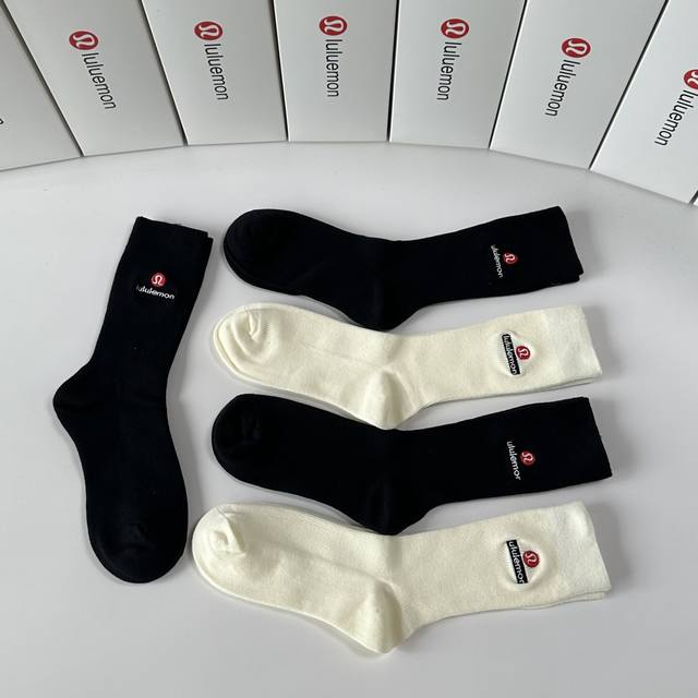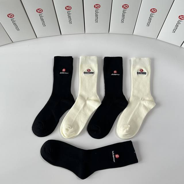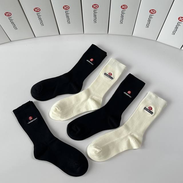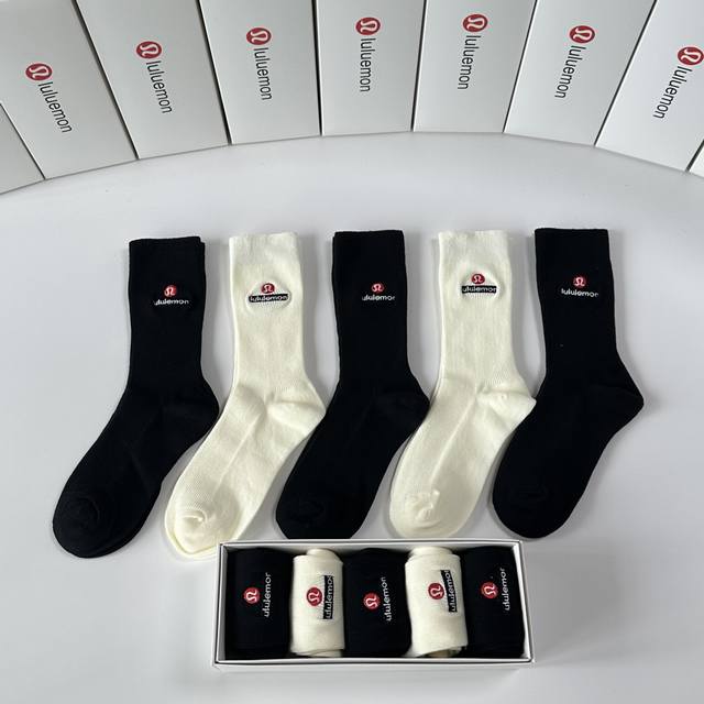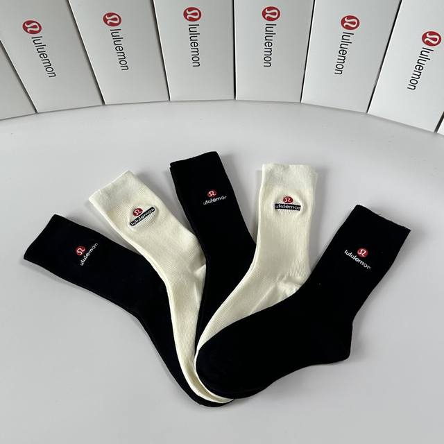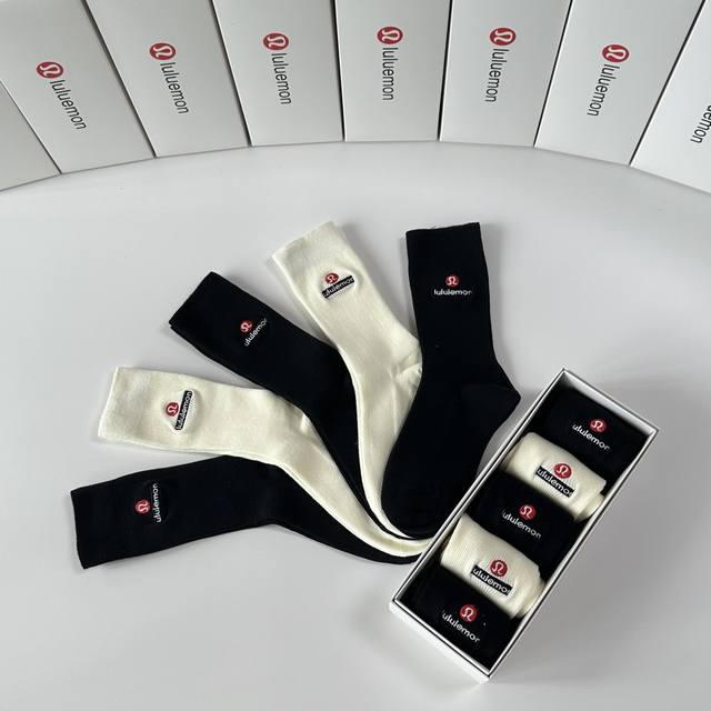 Special Packaging DDD Lululemon New Cashmere Embroidered Mid-Length Slouch Socks! Five pairs per box, same style as in department stores, designer street style, a must-have for trendsetters, super easy to match DDD
