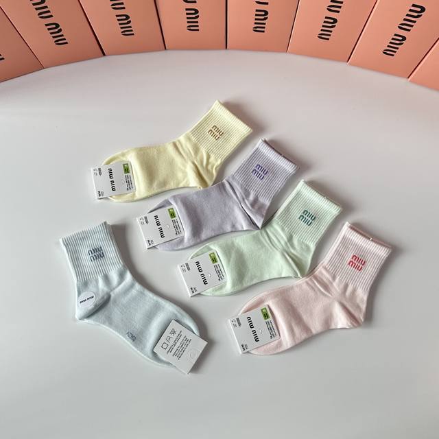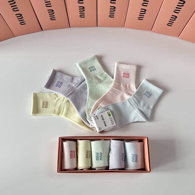 Miumiu Miu Miu new mid-length stacked socks! Five pairs per box, counter-synchronized tube socks, big-name street style, a must-have for fashionistas, super easy to match