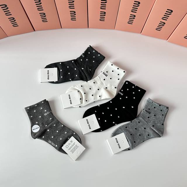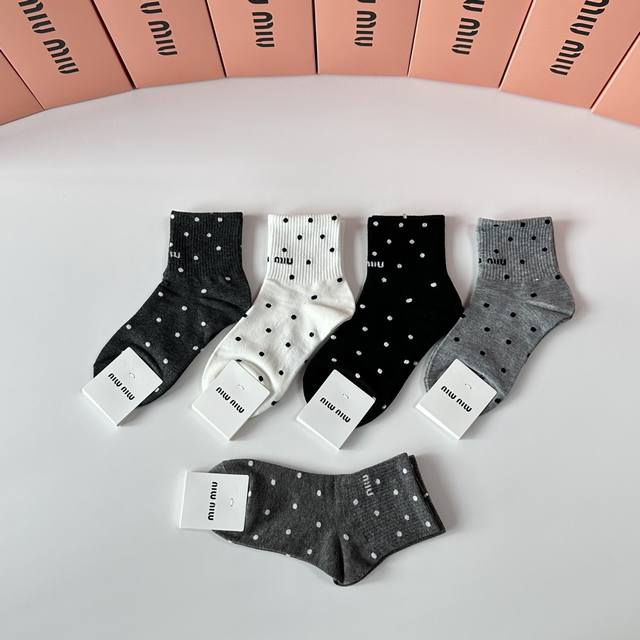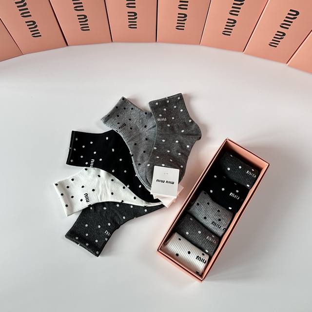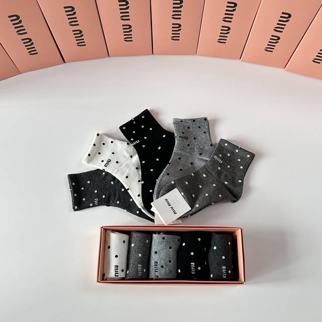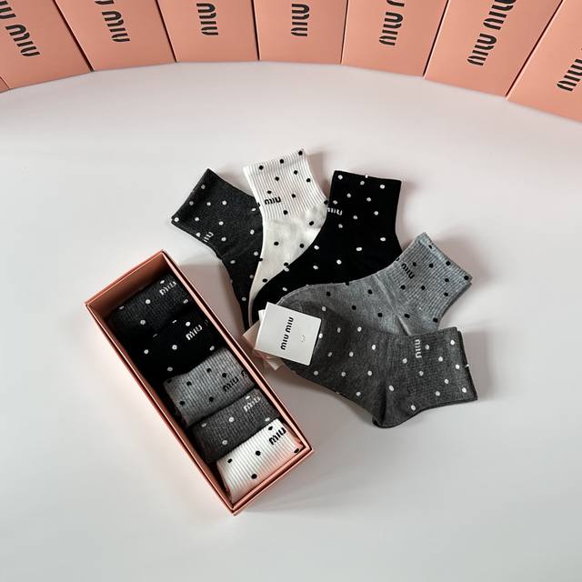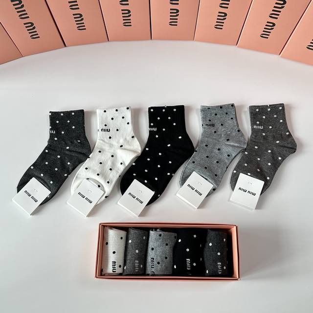 Miumiu Miu Miu new mid-length stacked socks! Five pairs per box, counter-synchronized tube socks, big-name street style, a must-have for fashionistas, super easy to match