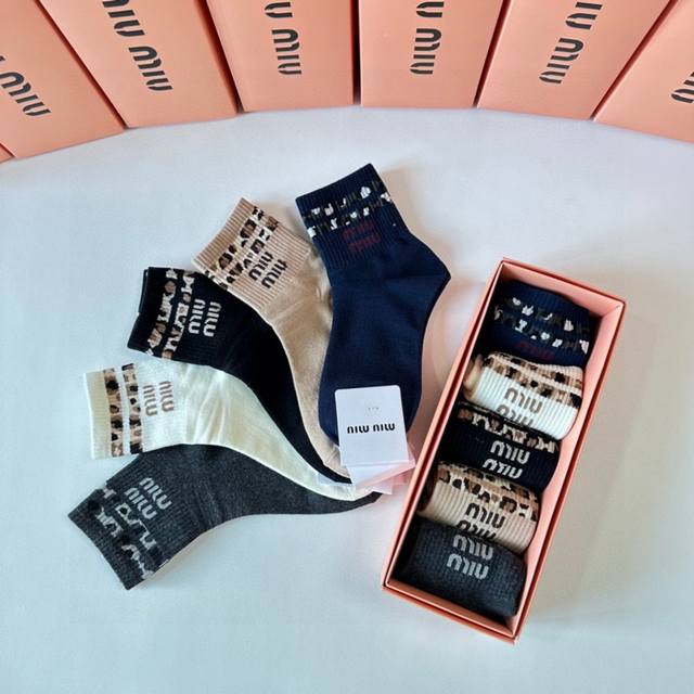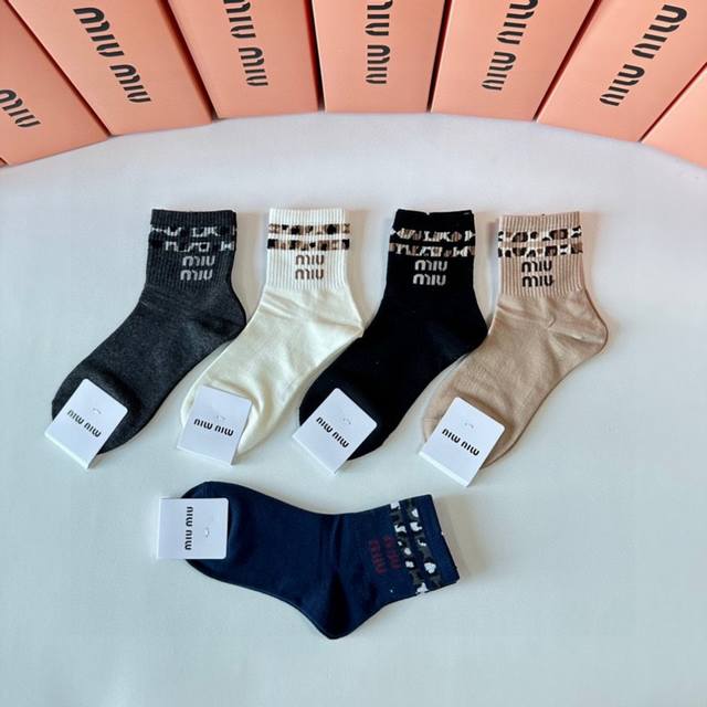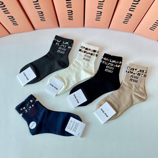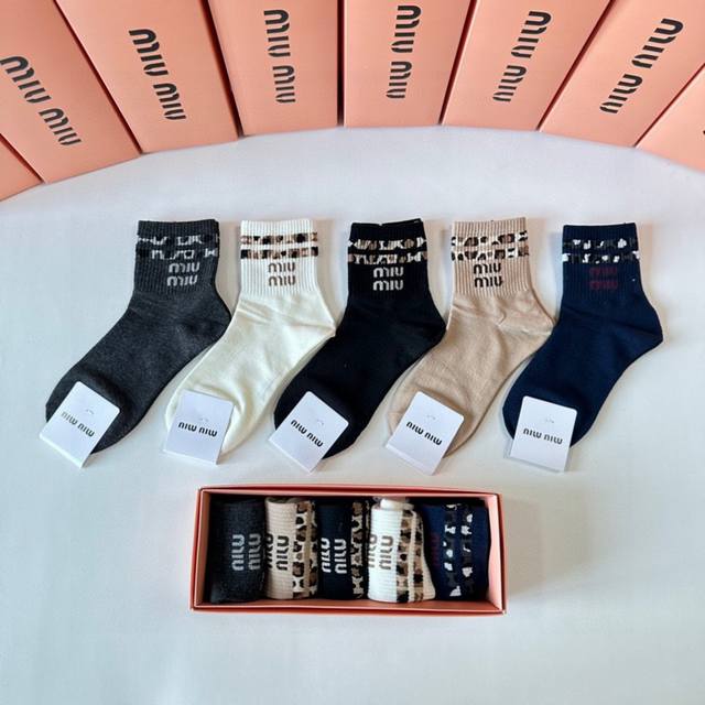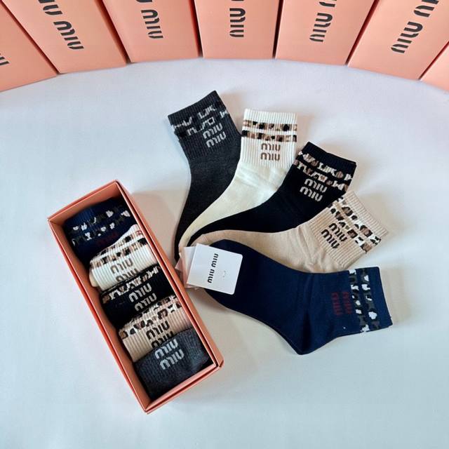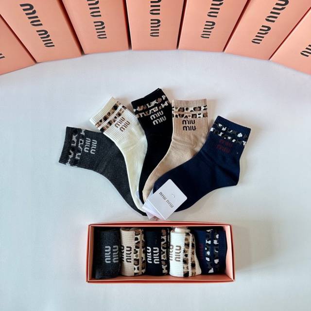 Miumiu Miu Miu's new classic mid-length stacked socks! Five pairs per box, counter-synchronized tube socks, big-name street style, a must-have for fashionistas, super good