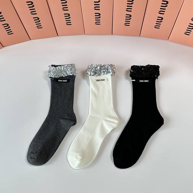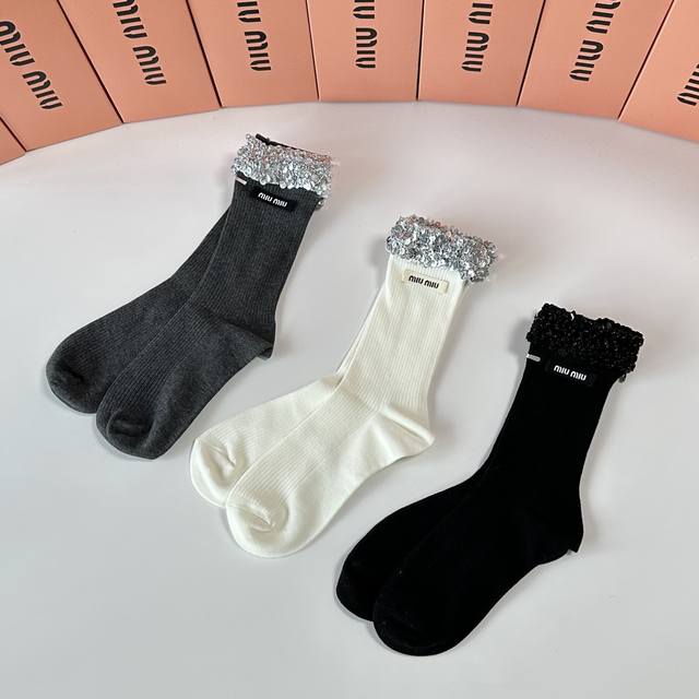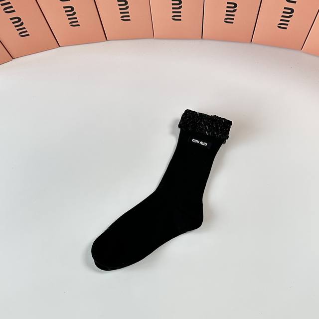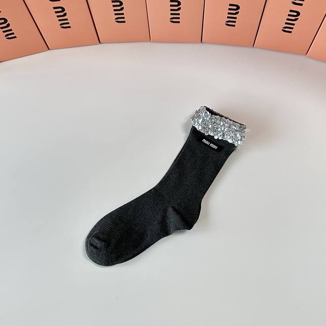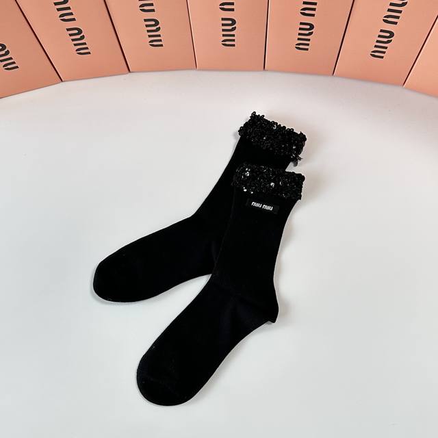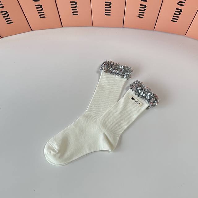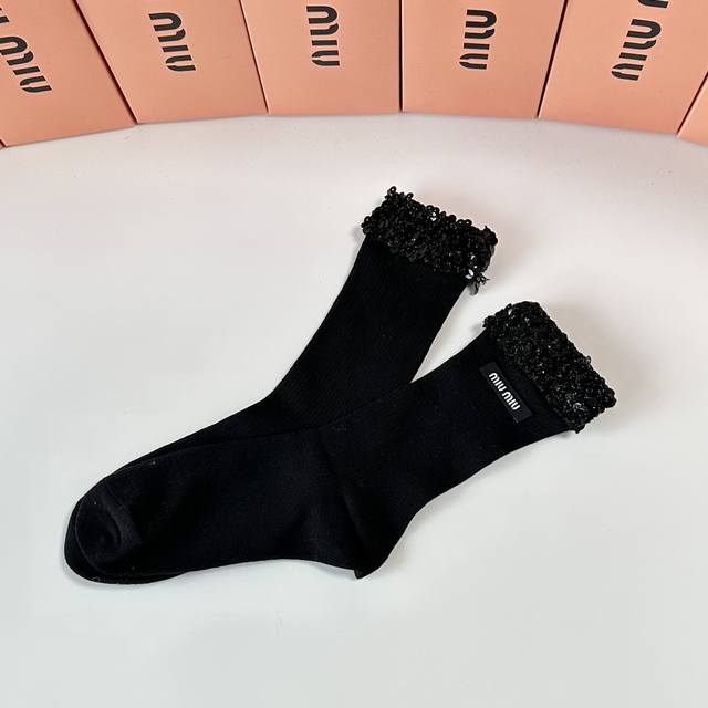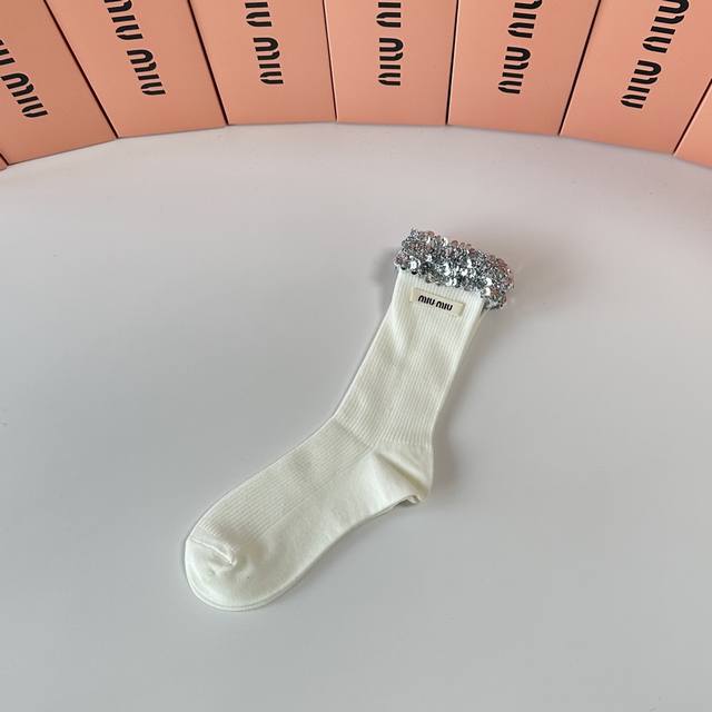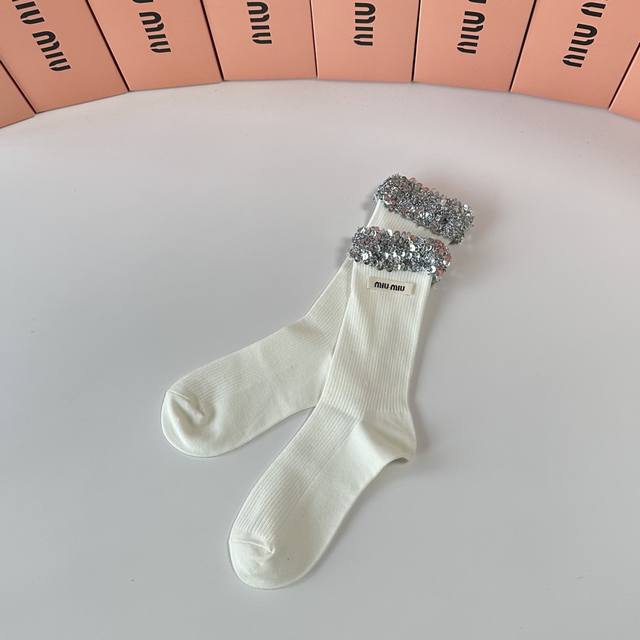 Special Packaging DDD Miumiu New Classic Heavy-Duty Embellished Socks! One pair per box, same style as in department stores, designer street style, a must-have for trendsetters, super easy to match. DDD