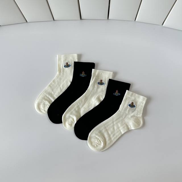 The Empress Dowager's new embroidered classic mid-tube pile socks! Five pairs in a box, counter-synchronized tube socks, big brands out, a must-have for fashionistas, super easy to match.