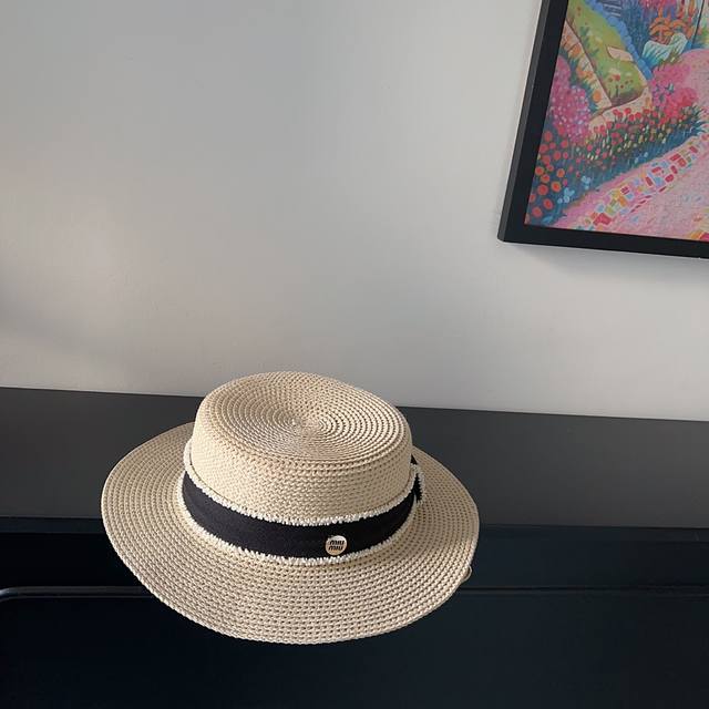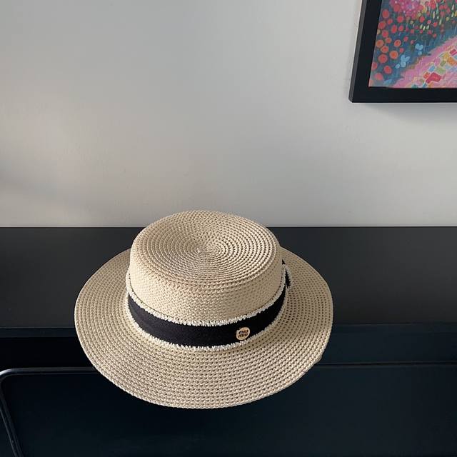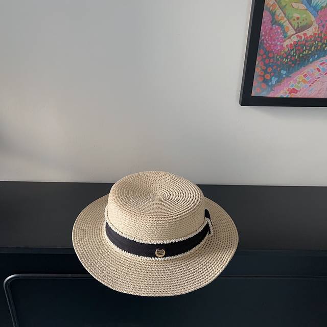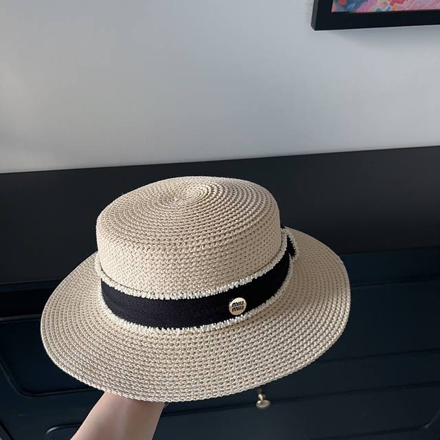 Special price with dust bag. Miumiu 2025 new brand woven sun hat, perfect for t