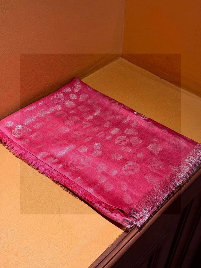 Super beautiful silver skull design~ A stylish and warm item from McQueen. You can never have too many~ McQueen's timeless skull design has been featured in countless celebrity and influencer street style photos~ It combines fashion and elegance, and is incredibly versatile, adaptable to various styles. The actual product is exquisite, the color is vibrant, and it feels lightweight and comfortable. A must-have for summer travel and air-conditioned rooms. Even more beautiful in winter. Limited stock available. Long scarf size: 200*70cm.