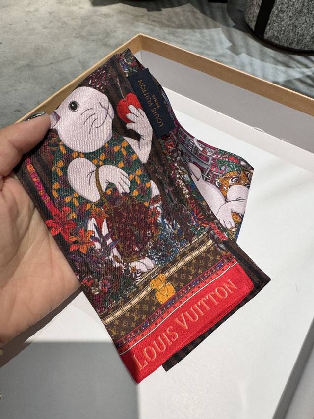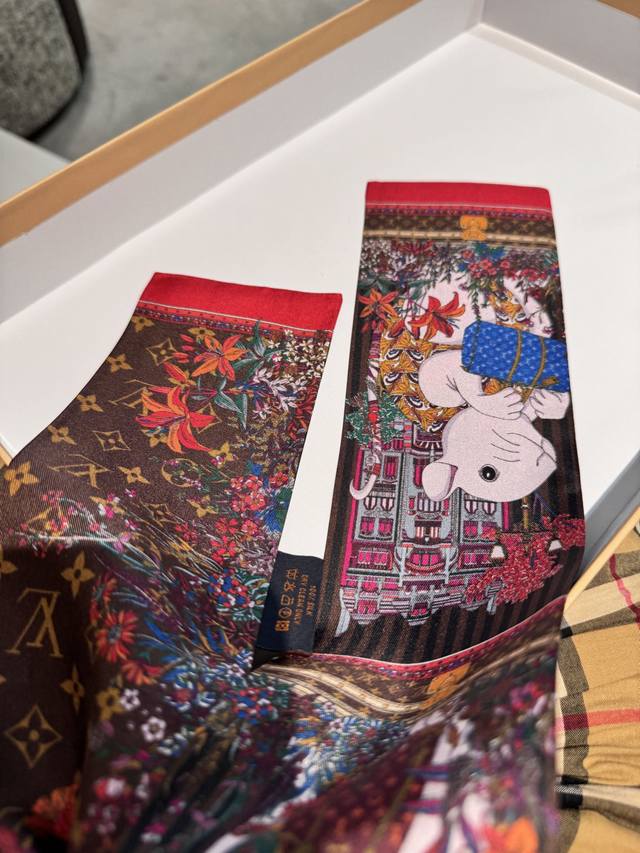 Super cute L brand silk scarf! Double-layered real silk! Not imitation silk from the market! Multiple uses: tie it to your bag, use it as a headband or a small neckerchief