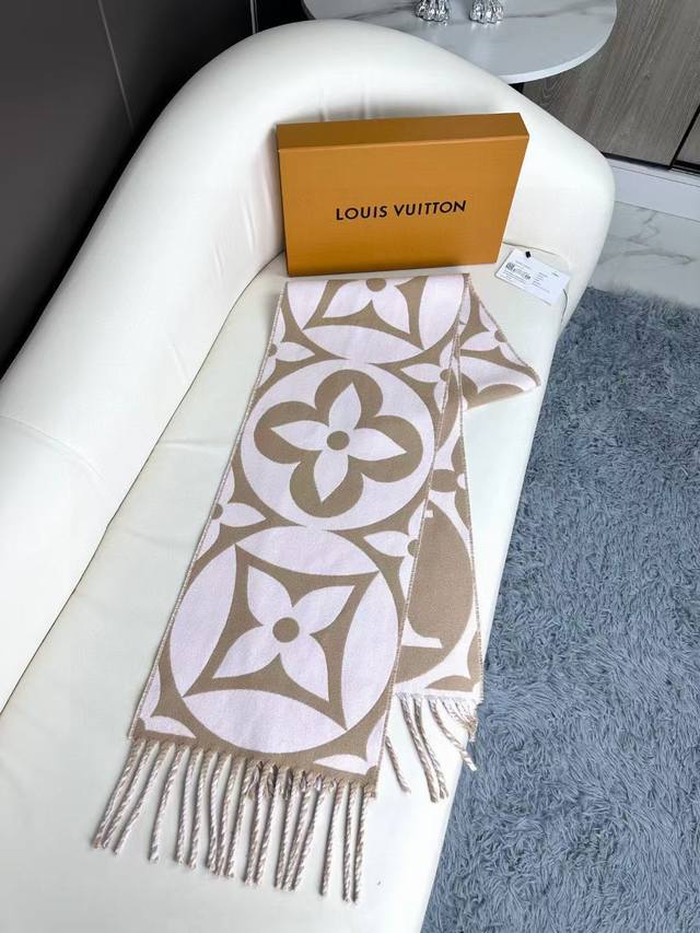 The four colors on the official website are so beautiful! The new cable knit scarf also has a new design. The large size features letters and flowers, and the long tassel trim adds a touch of luxury. Made of pure wool, it's comfortable and warm, protecting you from the cold winter winds. The design has a youthful feel. Size: 209 x 30 cm. Tassels not included. % wool jacquard pattern with tassel trim.