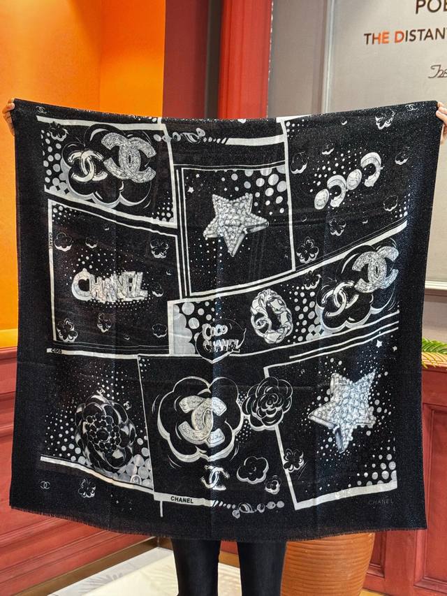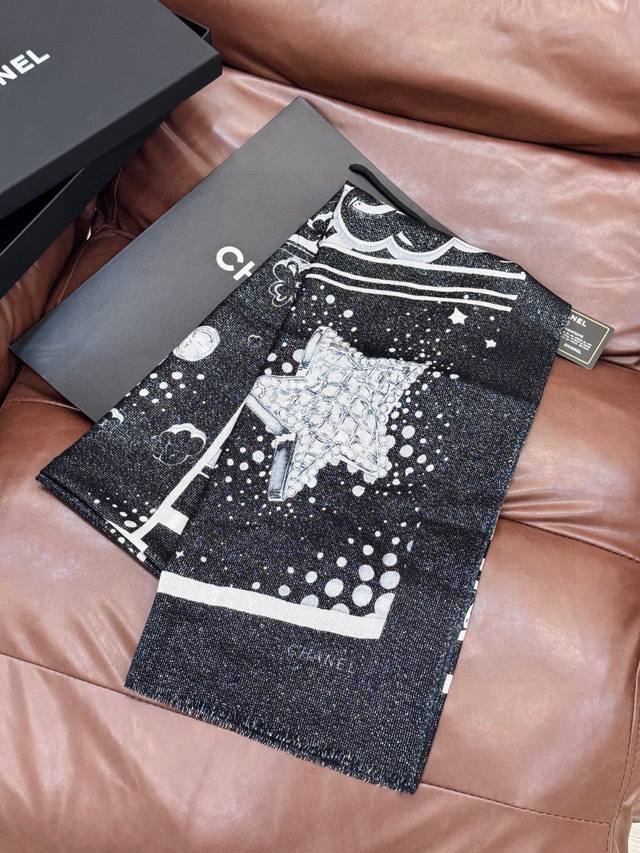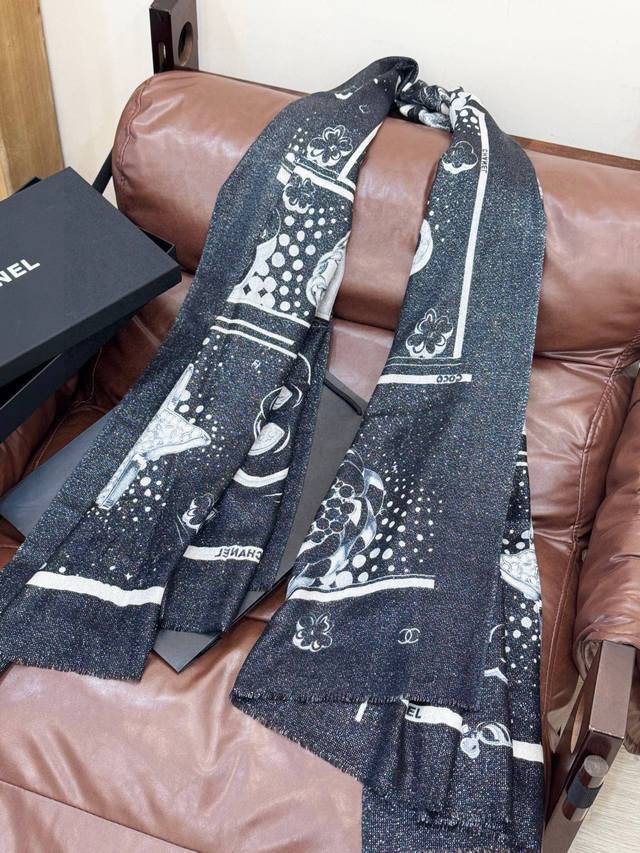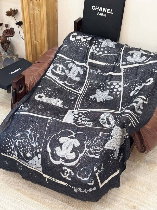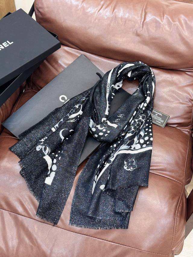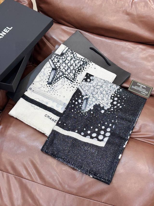 This Chanel cashmere scarf, a new arrival from our boutiques, is incredibly popular! The shimmering silver threads reveal its true beauty when worn; it's chic and exudes a high-end feel. Most importantly, it makes your skin look incredibly fair and is absolutely eye-catching. Featuring imported digital printing, it showcases its beauty to the fullest! There's a reason it's selling so well! It's not just about being pretty! Size: 110*200cm, 100% top-quality pure cashmere.