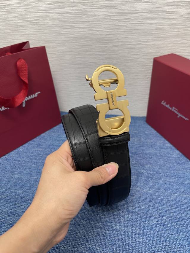 This Fila Gamo belt is crafted from plain leather, exuding urban chic and sporty details. The tonal metal Gancini buckle with contrasting lining adds a touch of chic.