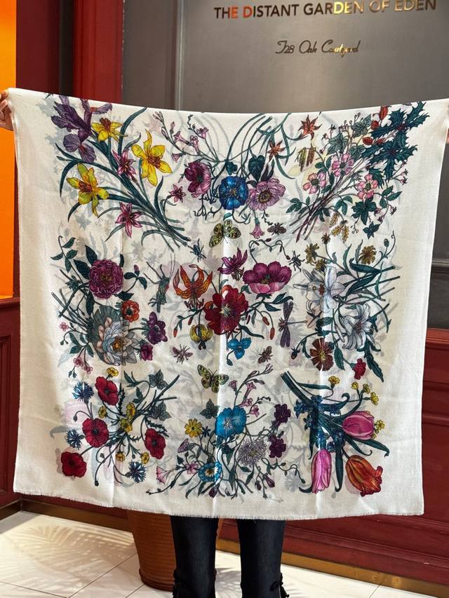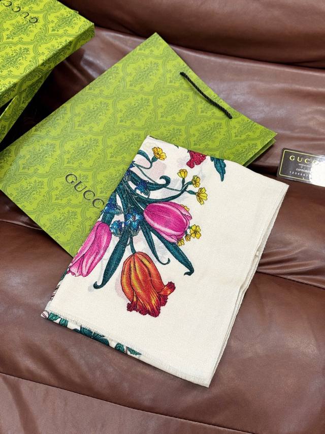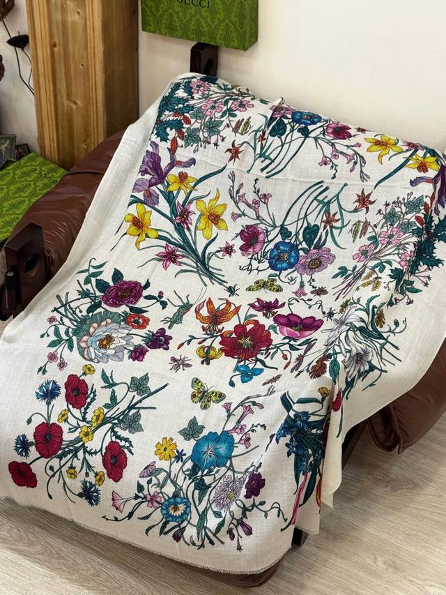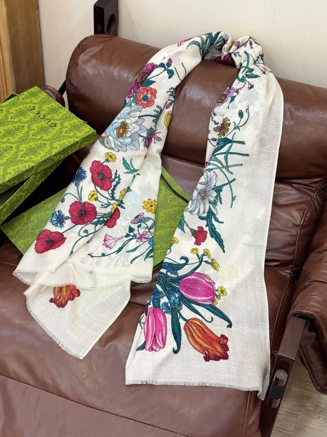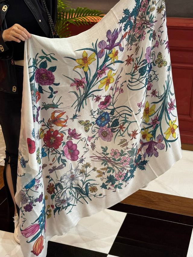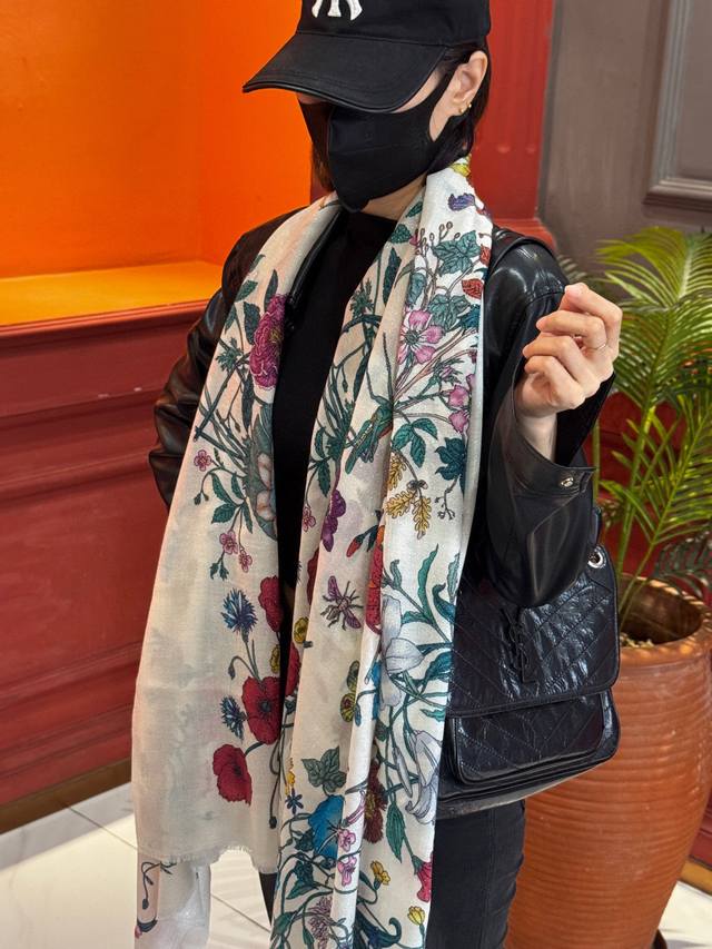 This new cashmere scarf is so shiny and glowing! Grab it while you can! A new floral long scarf from G brand, a high-end favorite, extremely rare! It looks amazing and is truly breathtaking. The effect when worn is absolutely stunning. The quality is perfect; the scarf gives off a high-end vibe while being incredibly delicate and beautiful. Definitely a must-have! The moment you hold it in your hand, you'll be glad you're a woman. A truly exquisite piece worth appreciating. Perfect for those with a refined and sophisticated taste. Size: 110*200cm. 100% premium cashmere.