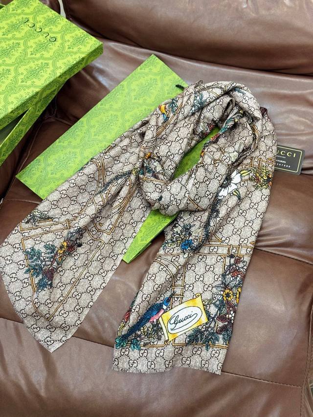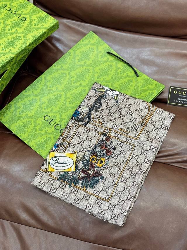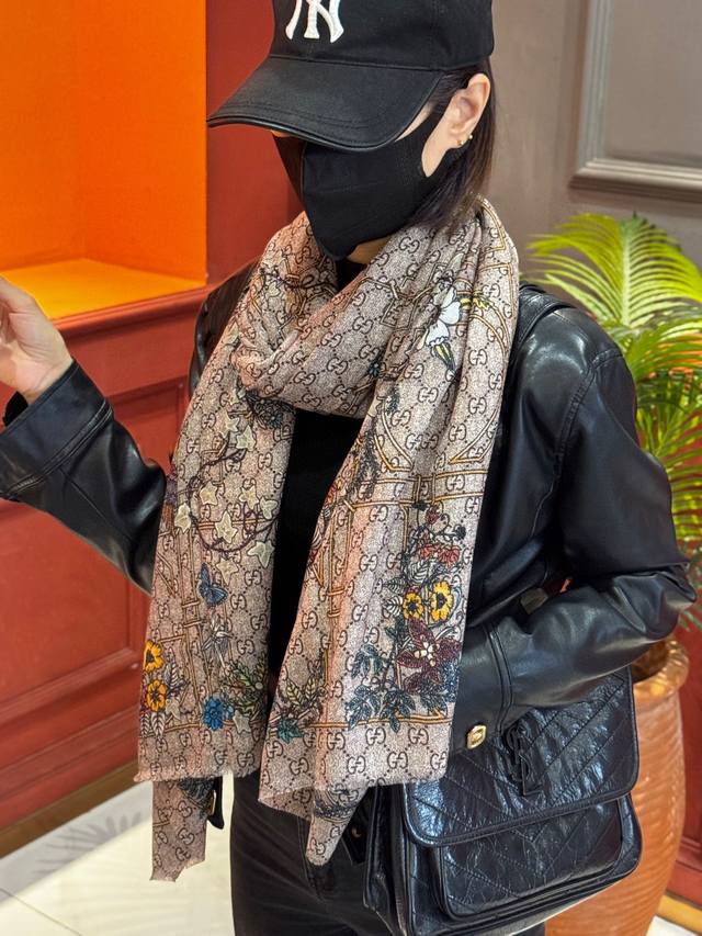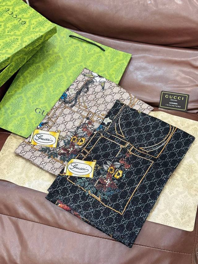 This new cashmere scarf is so shiny and glowing! Hurry and grab it while you can! A new G&G long scarf with Gg lettering and floral design. High-end, super rare! It looks amazing on, truly breathtaking. The quality is perfect; the scarf exudes a high-end aura while being incredibly delicate and beautiful. Definitely a must-have! The moment you hold it, you'll be glad you're a woman. A truly exquisite piece worth appreciating . Perfect for those with a refined and sophisticated style. Size: 110*200cm. 100% premium cashmere.