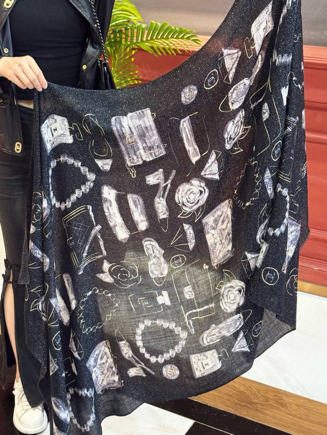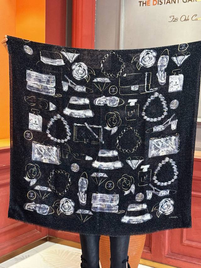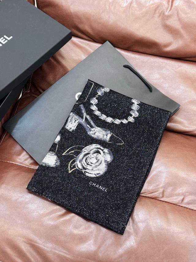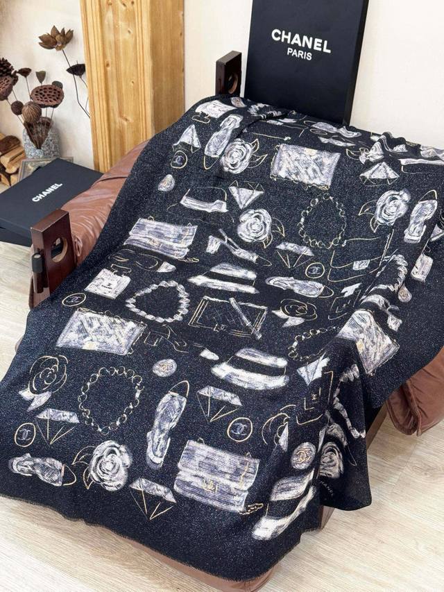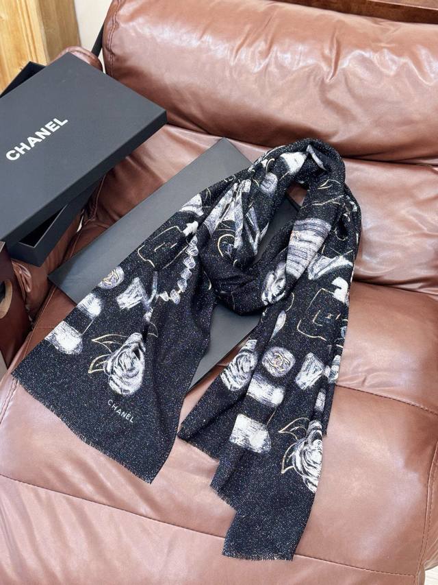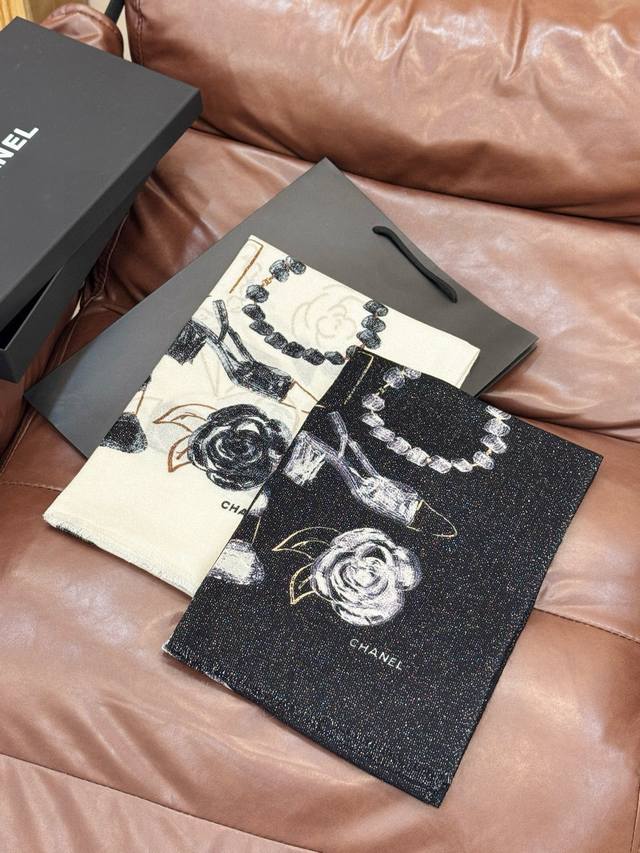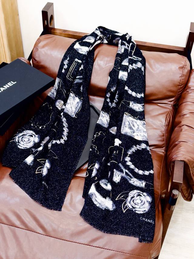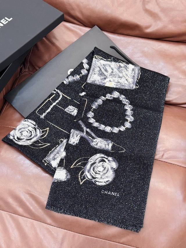 This new, luminous scarf is stunning! Made with premium silver cashmere fabric and features the Chanel logo. A luxurious and high-end design, this is a top-quality, boutique-quality scarf. Made with pure cashmere and silver thread, it boasts a unique style and the iconic Chanel logo print. It's incredibly beautiful and truly luxurious. A little pricey, but judge for yourself! Size: 110 x 200 cm. 100% top-grade pure cashmere.