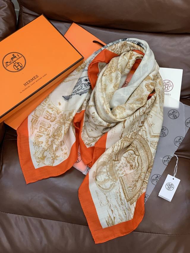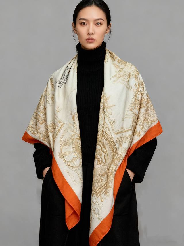 "City of Galloping Horses"!! Super elegant!! Not only beautiful on the outside, but also outstanding in quality and detail!! Wearing it instantly fills you with infinite gentle temperament!! High-class and tasteful, sophisticated and classy, with an innate air of grandeur~ Noble and fashionable temperament!! Embraces all body types and temperaments!! Visibly high quality and a great style. I love this steady sense of fashion and sophistication. Wearing it gives you a proud and free feeling. The texture is superb!! A heartfelt recommendation!! Let me emphasize the soul of this piece: the latest top-grade 70% cashmere and 30% silk fabric, it's incredibly comfortable!! Size: 140*140cm high-specification custom-made herringbone silk cashmere square scarf.