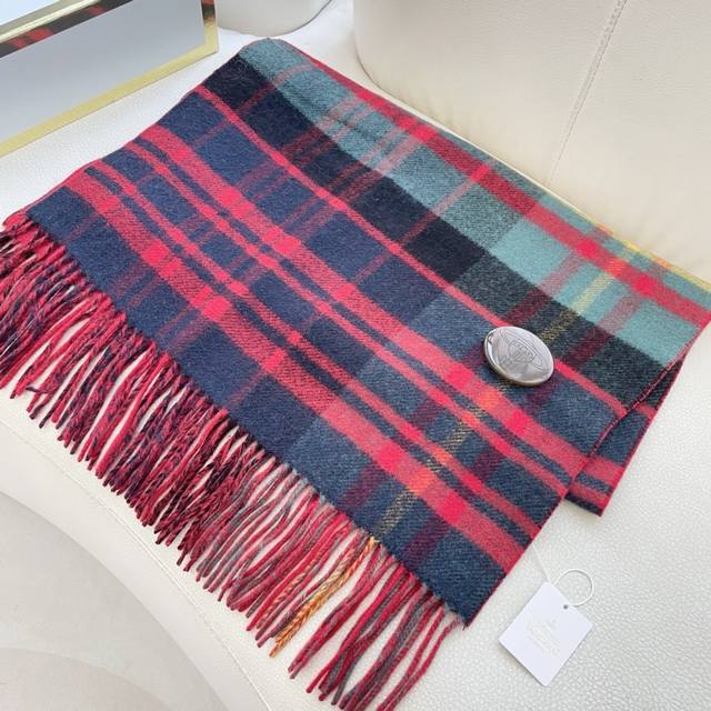 Vivienne Westwood's versatile shawl and scarf is finally here! This original Vivienne Westwood Saturn two-tone wool scarf offers exceptional value, is warm, and versatile. A must-have for autumn and winter wool capes, it offers double the comfort at a fraction of the price. The large Saturn logo adds a stylish and simple touch. The original factory craftsmanship is excellent, and it's incredibly comfortable, gentle on the neck and skin. Size: 50X160cm. This wide width makes it suitable for multiple styling options and is very practical.