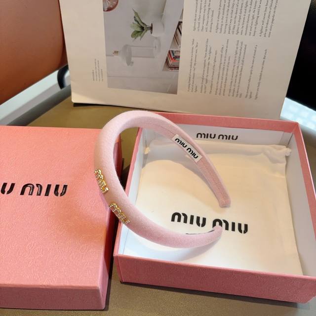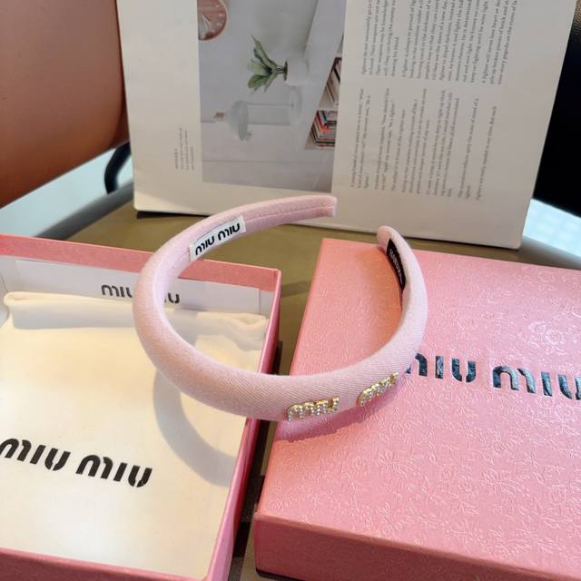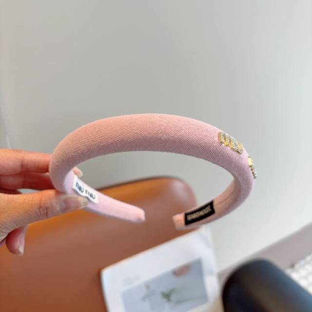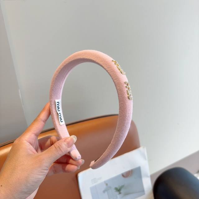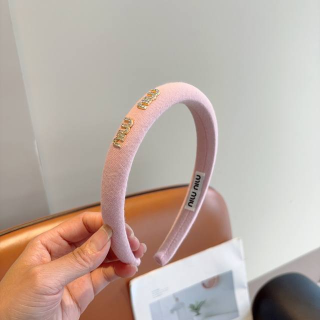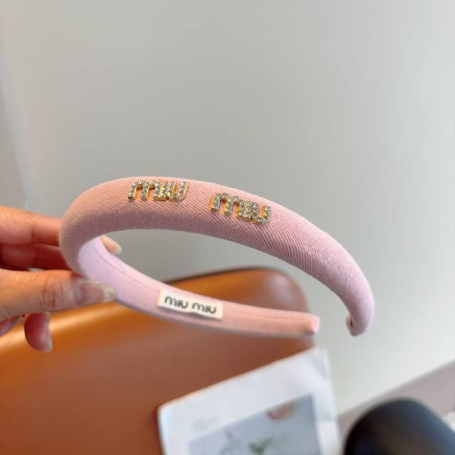 Miumiu's new high-end textured sponge headband with metal letters! Simple and stylish, showing texture, classic and versatile girly hair accessories