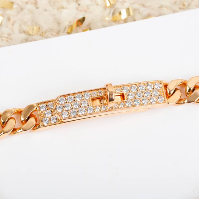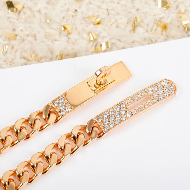 203691 We produce Kelly full diamond bracelets (Zp106600+). We are the only supplier that genuinely purchases genuine jewelry samples and develops our own. Custom orders for real gold and diamonds are available. We only produce genuine gold items that match the original samples. Large quantities are available; inquiries welcome. The super popular Kelly bracelet is a versatile and trendy brand bracelet. In stock, contact our customer service representative to place your order. Origin of the Kelly series: A handbag was created in the 1930s and named the Kelly bag in 1956. The Kelly bag's twist clasp is itself a beautiful piece of jewelry, and it can also be seen on gold, rose gold, or diamond-encrusted white gold bracelets and chains. The chain requires special customization; it's not an ordinary chain on the market. The chain surface requires high-end machine cutting and polishing to ensure each link is of uniform thickness and has a smooth, bright surface. Then, thick gold plating is used for longer-lasting color retention. The