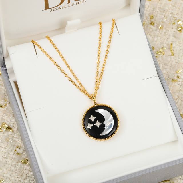 If you want to quickly improve your taste and catch up with the trend, now is the time! The Sun, Moon and Stars series is finally in stock~ The Sun, Moon and Stars series continues the gold carving craftsmanship and gemstone inlays with a double-sided flip structure. The front sun is made of white mother-of-pearl, and the gold surface is specially carved into three-dimensional undulating radial patterns, reminiscent of the heat under the sun. The back moon is made of black onyx, with a crescent moon carved from mother-of-pearl in the center, which complements the natural onyx. Three stars are also embellished on one side of the crescent. The raised studs on the surface can be seen, and the changing angle creates a unique light and shadow. It looks equally good when worn alternating front and back. The entire chain is made of solid sterling silver with 18K thick gold electroplating. Compared with the original, in addition to the gold content, our products are just as good as the originals , giving you enough confidence to sell it with confidence.