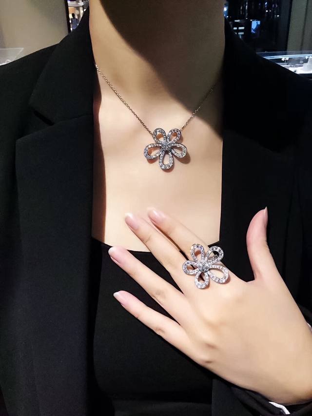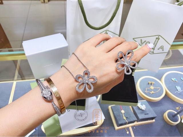 Flowerlace high-end jewelry series combines the transparency of lace with the elegant contours of flowers, and combines Van Cleef & Arpels' two main sources of inspiration: nature and haute couture. The hollow design and asymmetrical petals are designed to spread outward, with an arc as if a bud blooms instantly. Make the flower more lively and natural. A must-have for internet celebrities, each diamond is hand-set by a professional master craftsman! The six measurements in the middle are the jewelry interface, a method often used. For our masters who make gold products, they are very familiar with the method. The gaps are super dense. Ladies, please enlarge our pictures 100 times to see our quality.