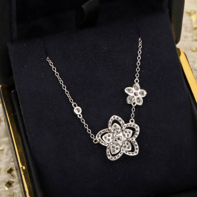 206374 We offer the large size of the Wild Flower Two-Flower Necklace, available for custom order in 18K genuine gold and diamonds. We only produce genuine gold pieces that match the original design. For pricing, please inquire. Our Wild Flower necklace surpasses various gold items on the market. The Wild Flower diamond flowers bloom gracefully and elegantly, brimming with vitality. Each petal is meticulously crafted, naturally shaped, and adorned with sparkling diamonds, capturing the beautiful moment of the flower's bloom. Wear Wild Flower's exquisite jewelry and step into a garden blooming just for you. From a single delicate flower to a dazzling cluster, each Wild Flower jewelry piece embodies exquisite design and a confident, captivating style, allowing you to mix and match as you please. Made entirely of 925 silver, ensuring longer color retention.