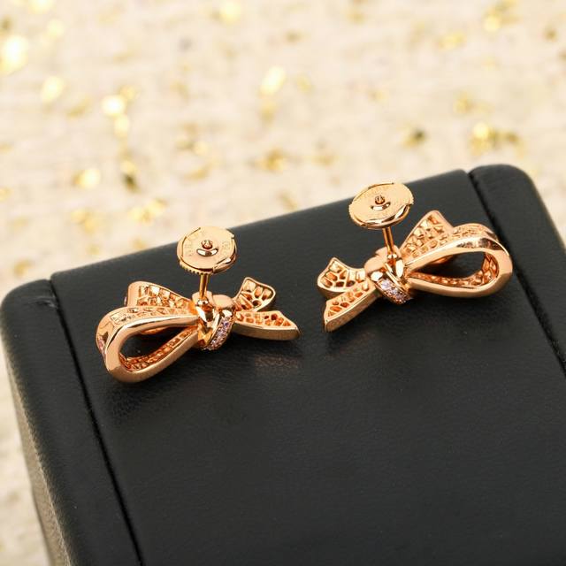 206744 We produce bow stud earrings, custom-made with genuine gold and diamonds. We only produce genuine gold items that match the original, authentic version. We compete with various gold items on the market. For large orders, please inquire. The Tilda's Bow series pav