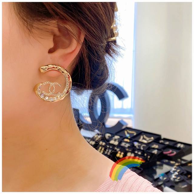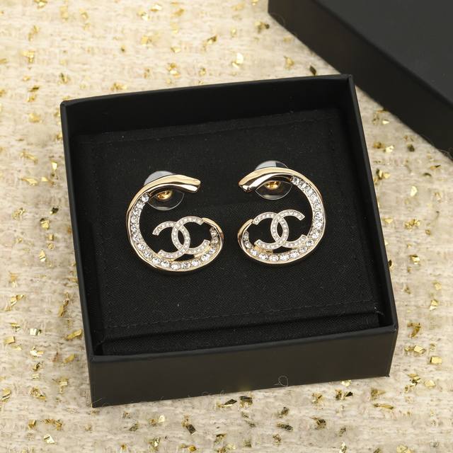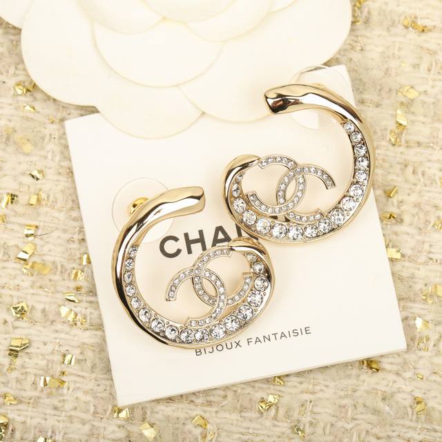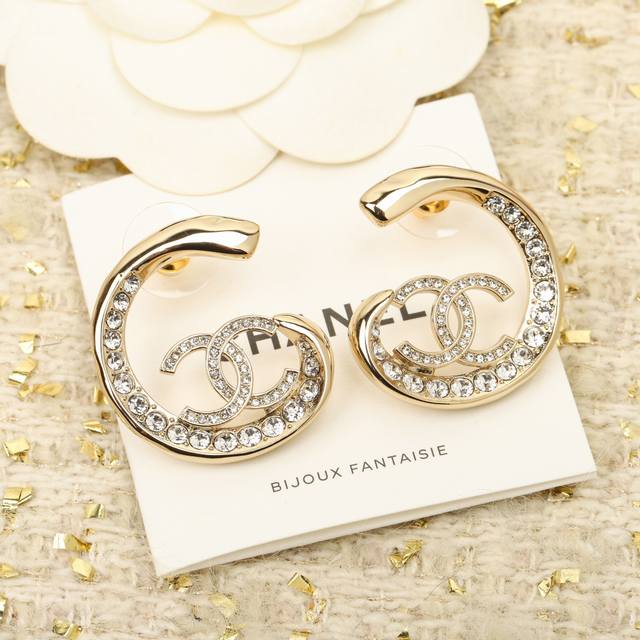 208435 Our Product Zp9490, Bulk Orders Please Contact Customer Service. Double C Earrings, Consistent Zp Brass Material, Each Adorned With Swarovski Crystals, Blingbling, Perfect For Daily Wear And Various Outfits.
