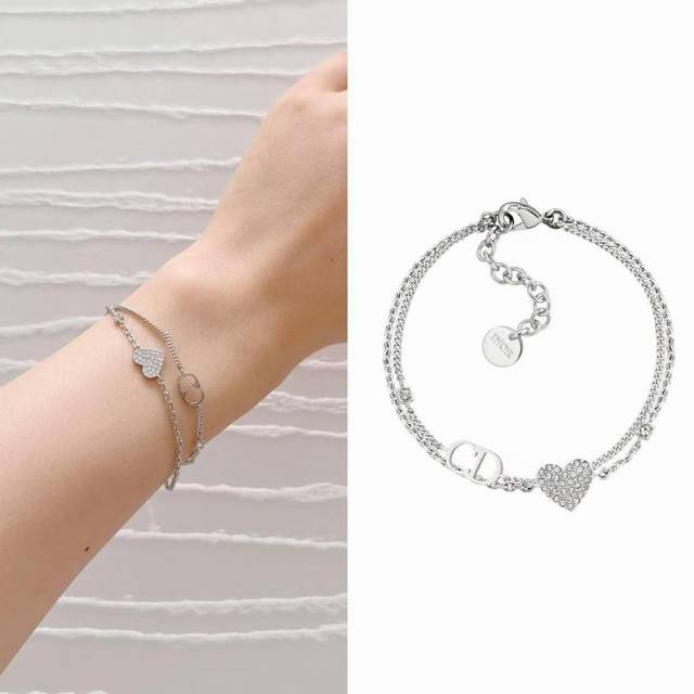 D Double-layer CD heart bracelet 25 latest model! The latest silver with a cool feel! Super beautiful, in stock, first come, first served as usual! You can't go wrong with this style if you just close your eyes and buy it! It's very classic and high-end! This is a style that you will still love ten years later! It is made of brass and each one is a Swarovski diamond! It is very bling, and the silver and white diamonds are really cool and high-end! I love it! The exquisite and compact design is very suitable for everyday wear!