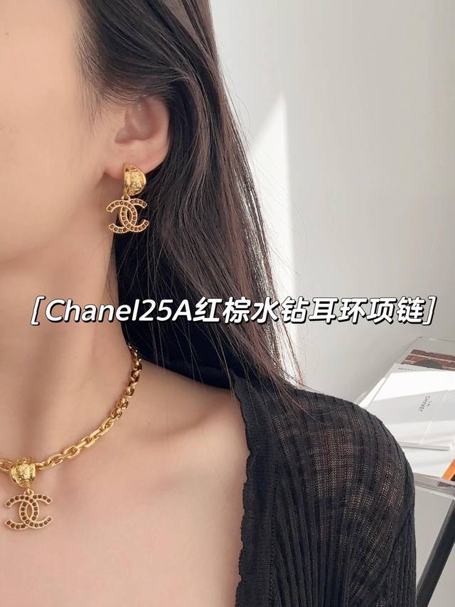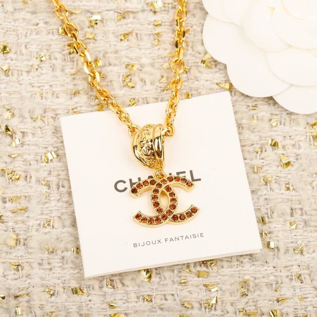 Fragrance 25A ring double C letter amber rhinestone necklace is a must-buy! The first time it is available on the entire network, the 25A high-end handmade series retro modern series, rich gold with amber diamonds, is a fashionable retro style! A bit of a vintage modern feel, the old money style will go well with the reddish brown feeling, very retro! And it looks very high-end when worn in autumn and winter