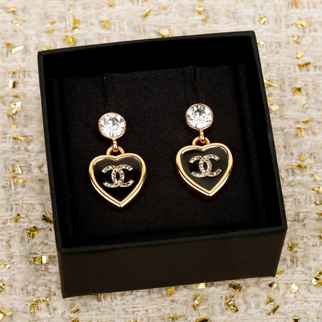 Black and Gold Heart Double C Earrings 25B Autumn/Winter Newest Style, First Release Online! A must-have this season! Rich black and gold color scheme, exuding a retro vibe! Excellent quality, impeccable hardware details and workmanship, even more exquisite in person! Highly recommended! "Fashion fades, style endures"