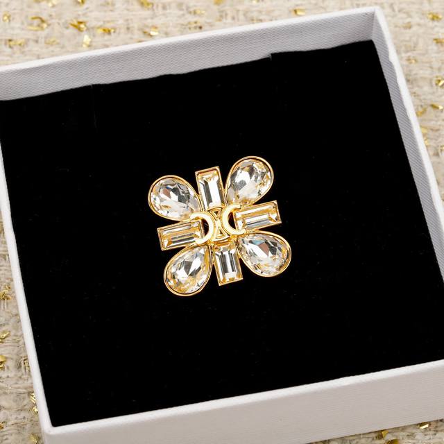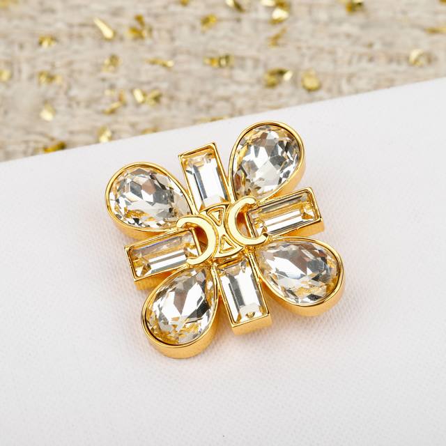 Celne teardrop-shaped diamond Arc de Triomphe brooch, the same style worn by Liu Shishi, is so beautiful! Super bling, you'll fall in love at first sight! A favorite among online celebrities. It features four Swarovski teardrop diamonds and four rectangular diamonds. The diamond hardware was ordered long ago. The entire piece is cut using CNC technology on a million-dollar imported precision engraving machine, resulting in clean and crisp lines! Very heavy-duty workmanship! The irregularly shaped diamonds are extremely expensive! 360-degree meticulous polishing! The details are truly even more perfect than the original! Distinguishing it from various low-end versions on the market, this upgraded four-leaf clover shape brings double the luck. Wearing it makes you look like a true socialite, so stunning, so beautiful, so bling! Cool, sweet, retro, and elegant
