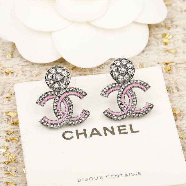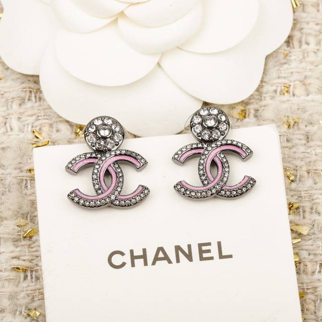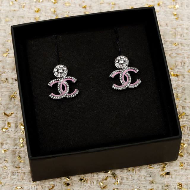 Black and pink! Fragrant black and pink enamel earrings 25B autumn and winter new beautiful series first launched on the entire network. Love it!