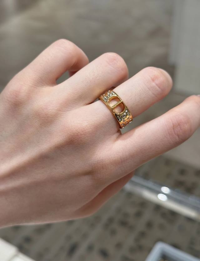 Dor Cd rhinestone rings are available in sizes 16, 17, and 18mm (Mm and D). Or, this ring is just too perfect for me! The classic Cd logo paired with a rhinestone distribution design, the gold is sophisticated and eye-catching. Wearing it instantly elevates the sophistication of your outfit, easily becoming a highlight whether paired with simple work attire or niche design clothing. Wear French luxury on your fingertips; every gesture is an elegant statement. It's a must-have item for any jewelry collection.