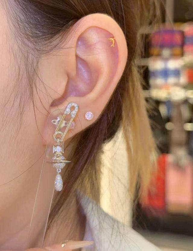 250648 Our pre-sale item will ship around the 25th, Zp3160. Baby, what is Happy Planet? Come on, this is Happy Planet DDD! Vivienne Westwood's stunning 3D heart earrings! Highly recommended, you can't go wrong with this! The pure crown is a classic symbol, while the sparkling Saturn rings outline the future. With the flowing light, it opens a brand new encounter with the future! The rhinestones on our Saturn heart are custom-made Swarovski crystals, not just some plastic beads and rhinestones you find on the market! You can completely feel its texture, feel, and luster when you hold it. The rhinestone embellishments on the Saturn design add a lot of cool and fashionable charm, making it punk yet a little girly, attracting a group of fashion fans! It's really gorgeous, both sweet and edgy, pure and alluring! Love at first sight! Absolutely the king of "practical + high-end," a true gem, a timeless treasure! Highly recommend getting a set from DDD.