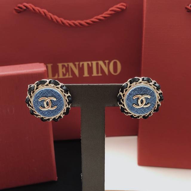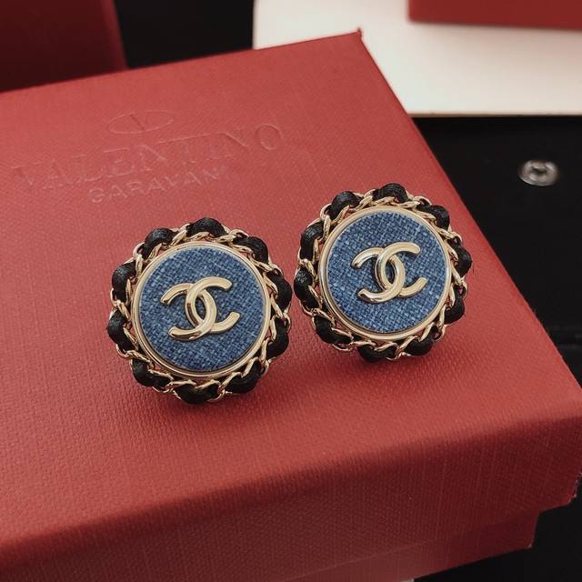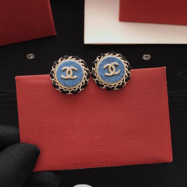 / 2567157FFF, item number Xed0717, Ch*Nel latest denim round stud earrings, identi