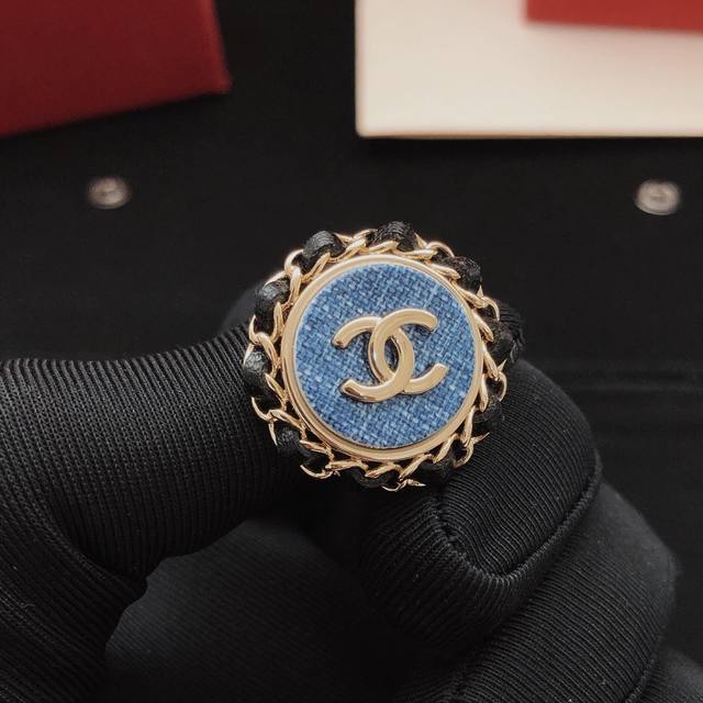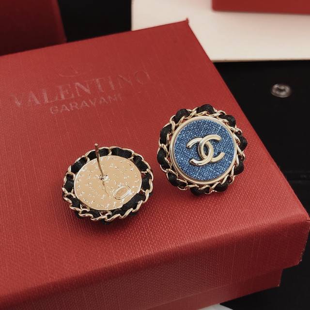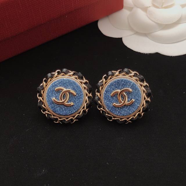 Ch*Nel latest denim round stud earrings, identical to Zp, made of brass.