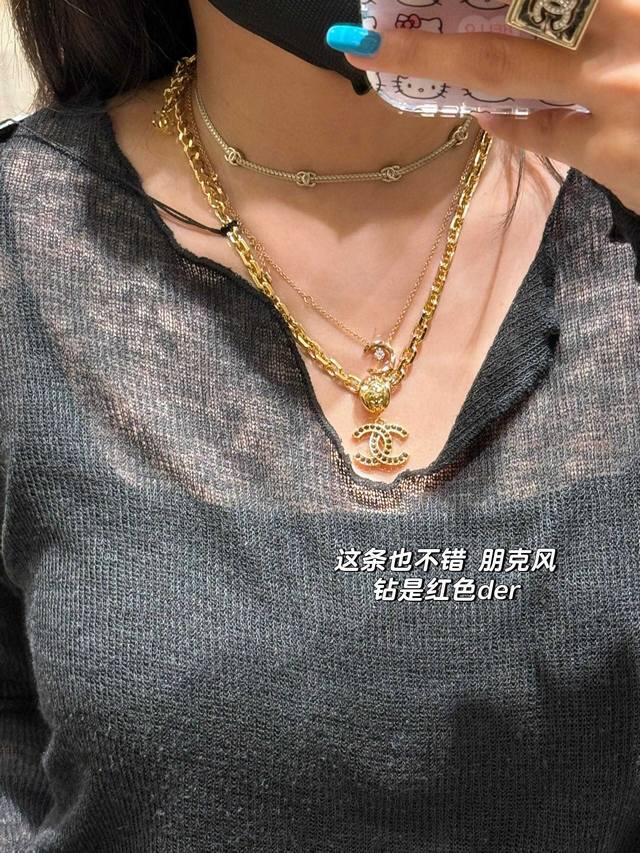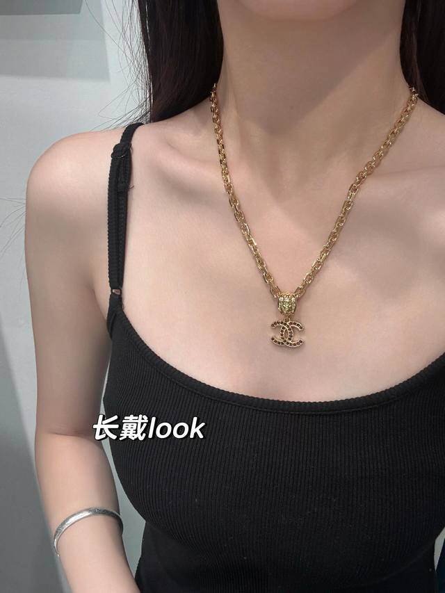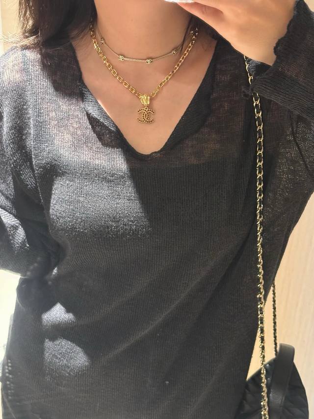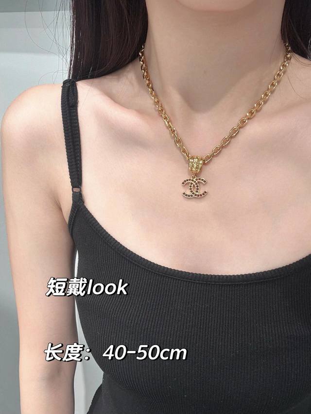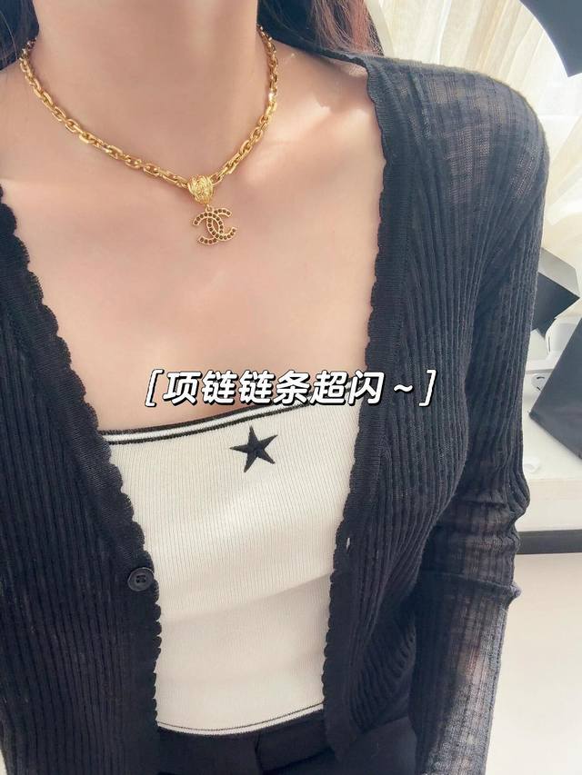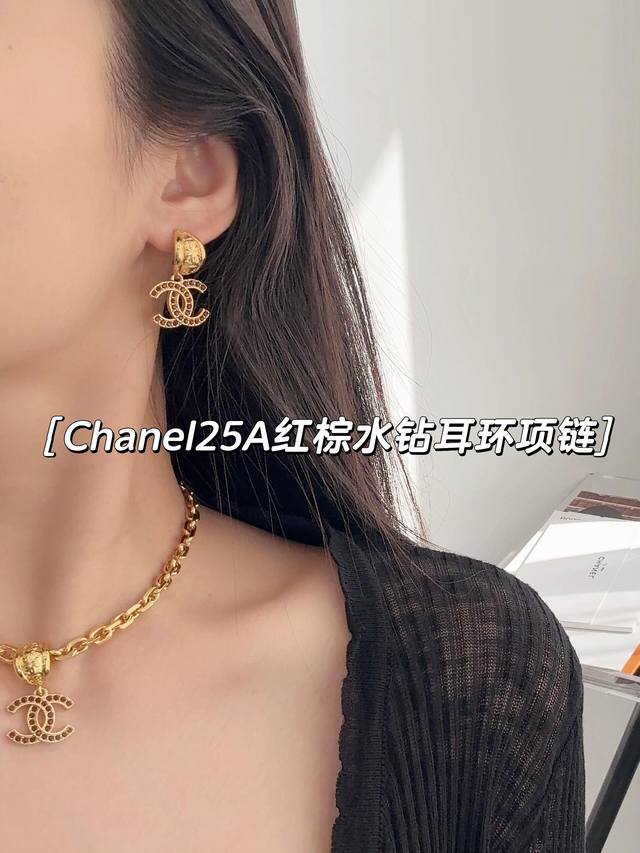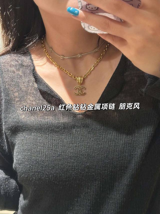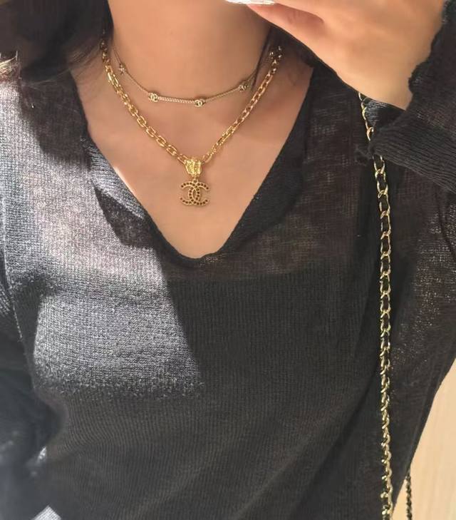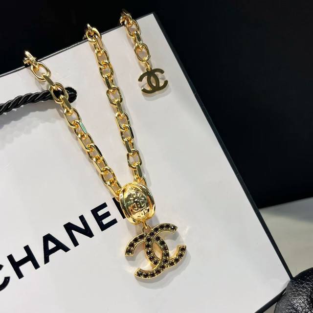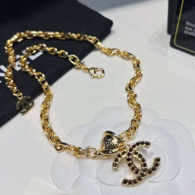 / 25A Amber-colored rhinestone double C ring letter necklace